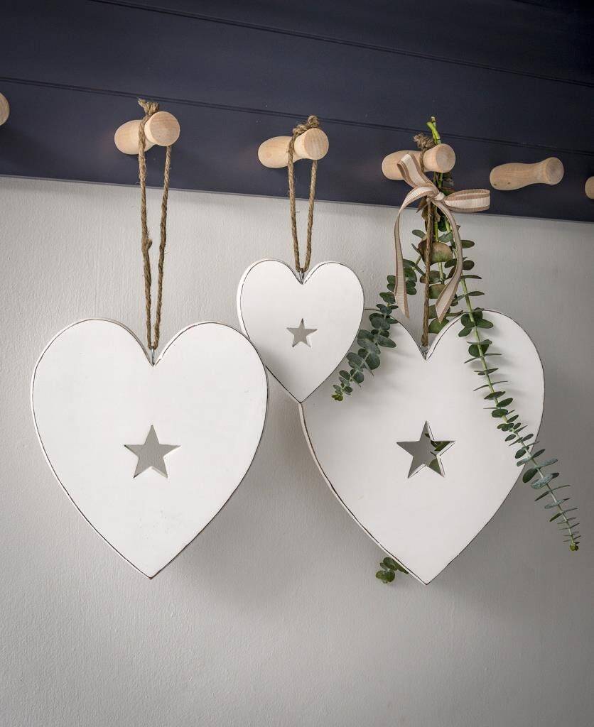 White Hearts With Star Cut Out Detail - Set of 3