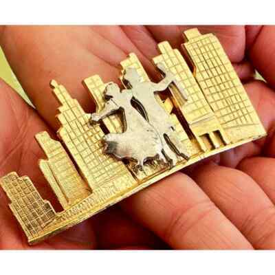 80s Vintage Ultra craft 3D pin brooch Gold Tone Pewter City Scape Dancers