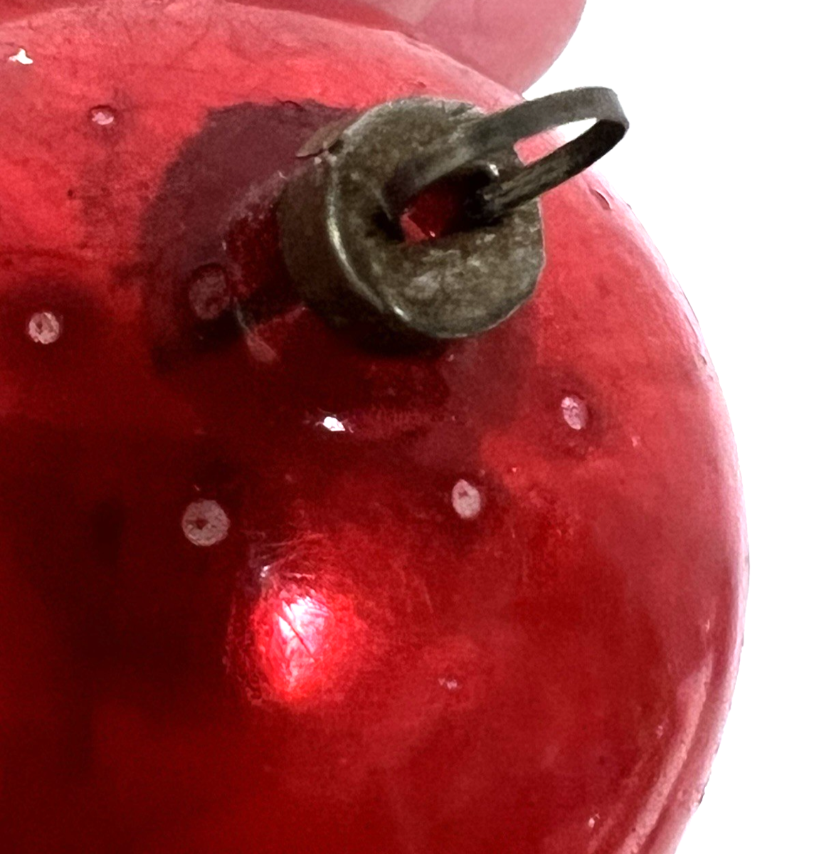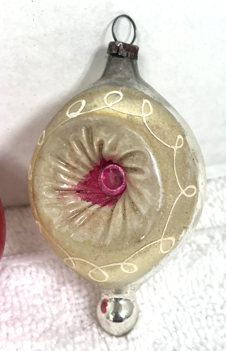 2 Antique Denty Christmas Ornaments Cream Hot Pink w Double Ball Red Star Shape