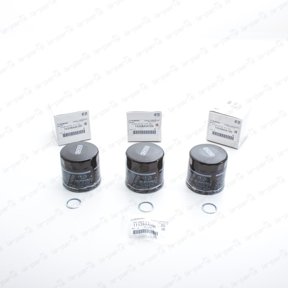New Genuine OEM Subaru Engine Oil Filter 15208AA100 & Crash Washer 3 PACK