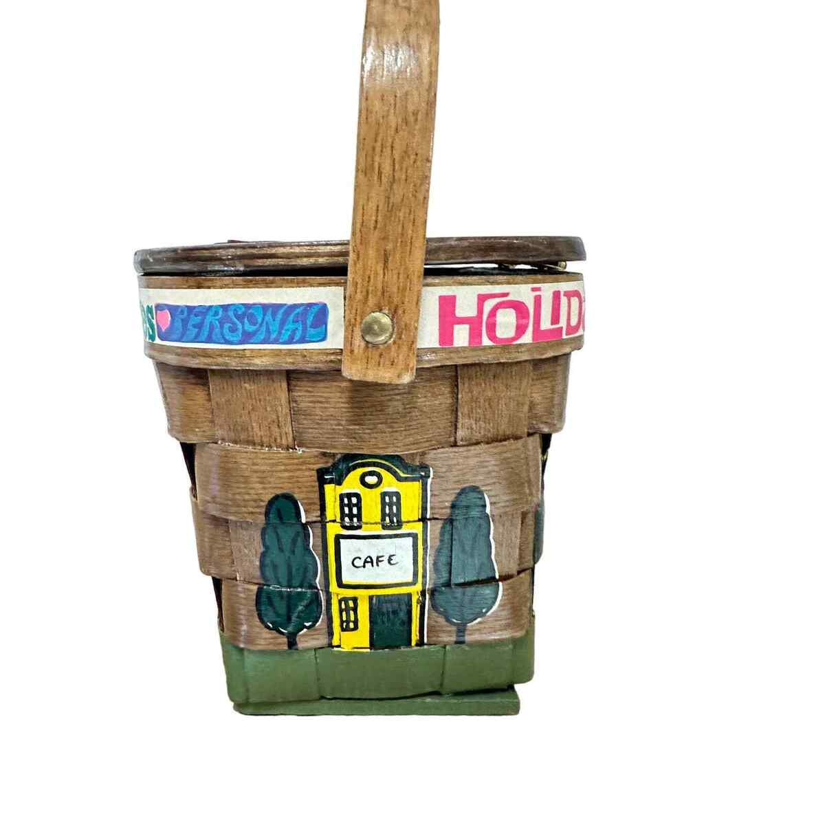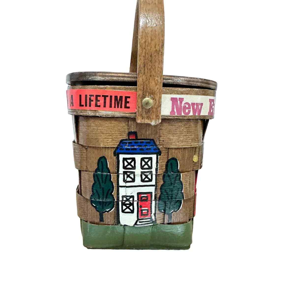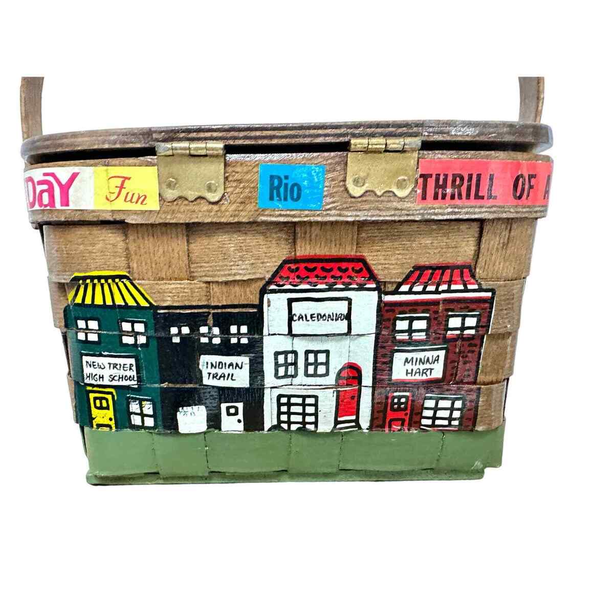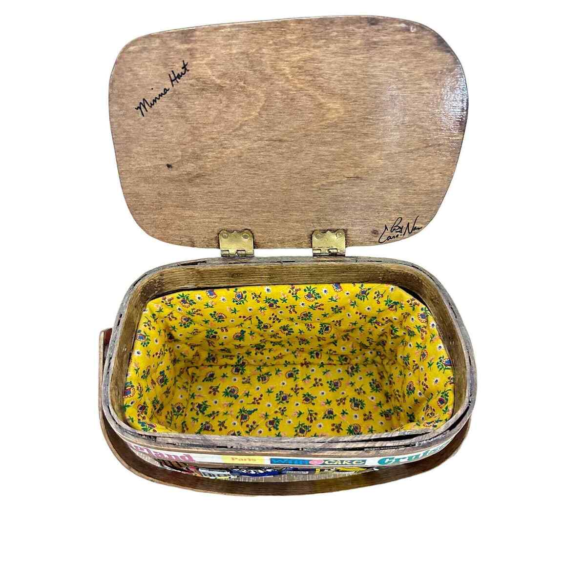 VTG Caro Nan Signed Wooden Basket Box Purse Minna Hart Store Illinois 1970s