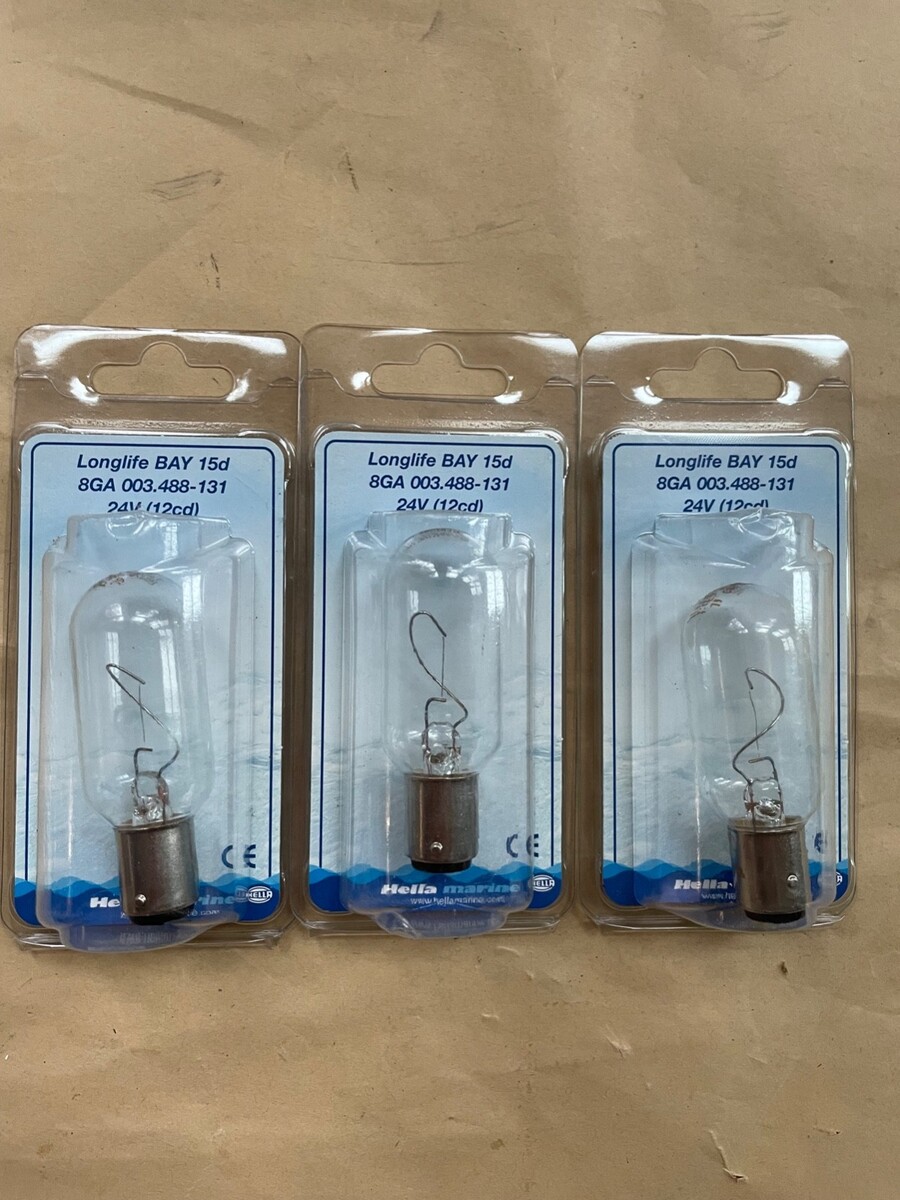 HELLA Marine Longlife BAY 15d 8GA 24V bulb. You get (3) three, all new and in the package.