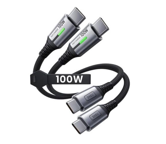 INIU Short USB C to USB C Cable 1ft 2-Pack 100W Type C Cord for iPhone 16 Pro...