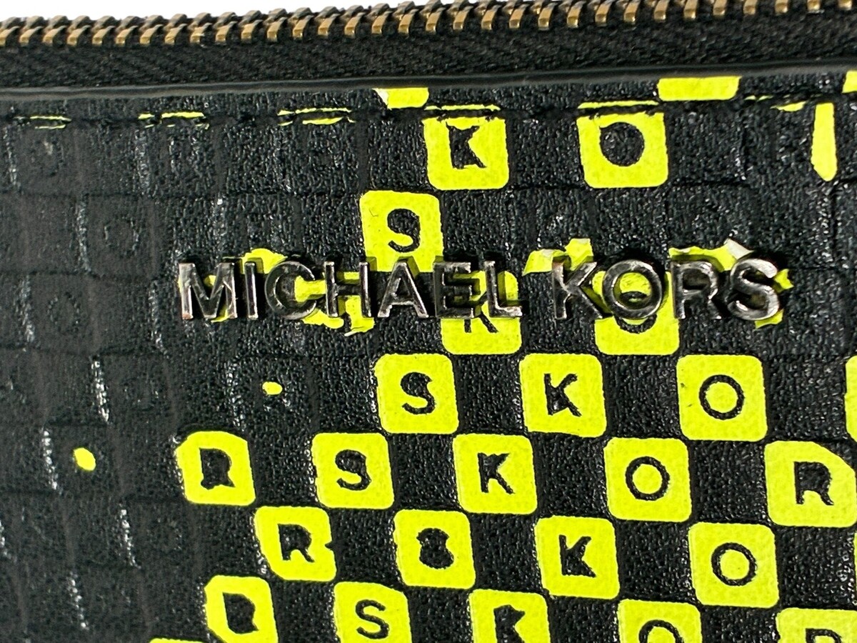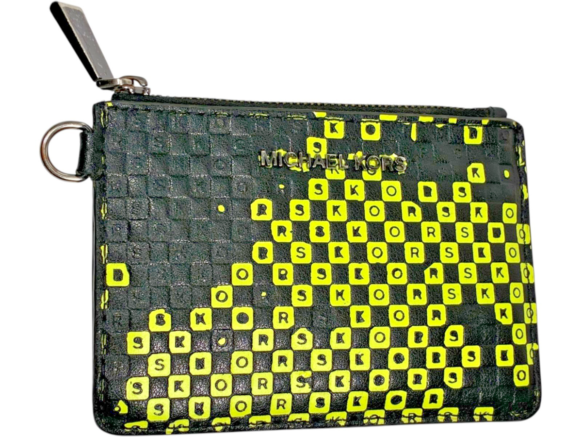 Michael Kors Black/Neon Yellow Checkerboard Coin Wallet / Card Holder