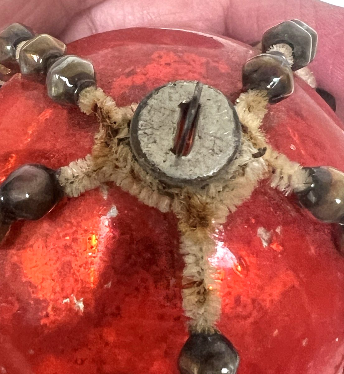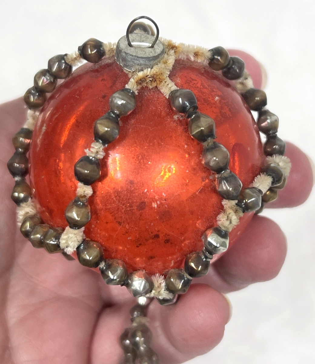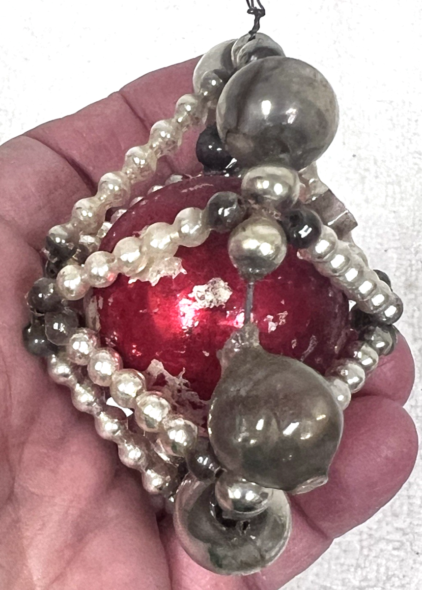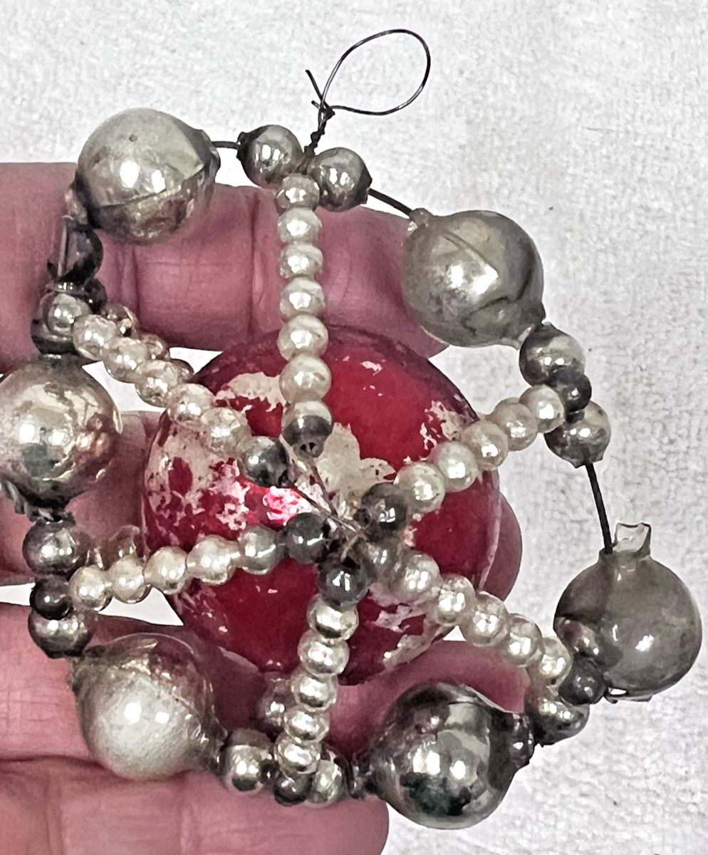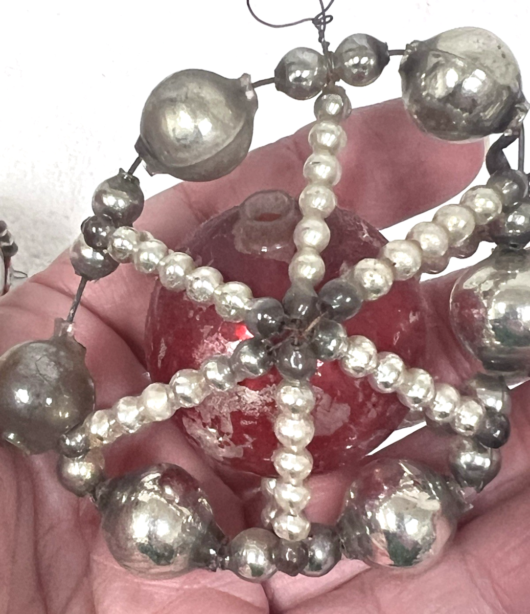 3 Vintage Mercury Glass Beaded Christmas Ornaments Dangles Plus in fair shape for the age ok some paint loss and some of the silver has darkened