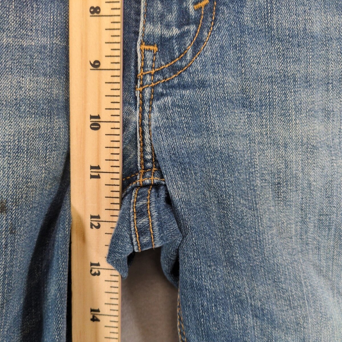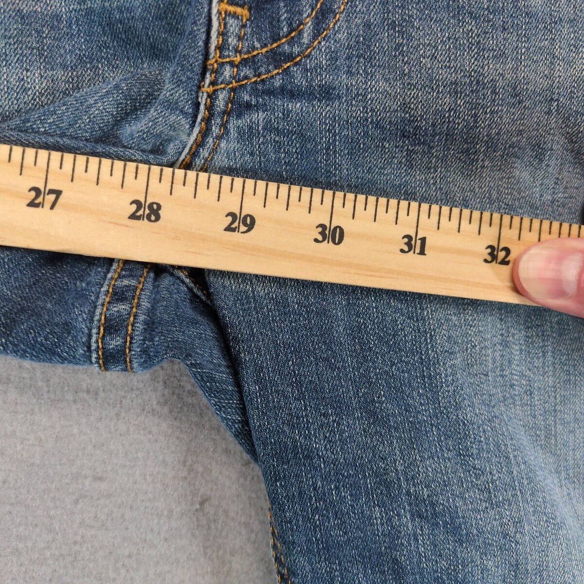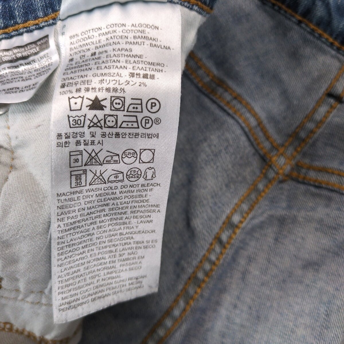 Features: Athletic Fit, Tapered Leg, Mid Rise, Medium Wash, Pockets, Easy Care, Stretch, Distressed, Solid Pattern, 40 in Measured Waist, 28 in Inseam, Button Zip Closure, 5-Pocket Design, Contrast Stitching, Copper Rivets, Logo, Whiskering, Machine Washable