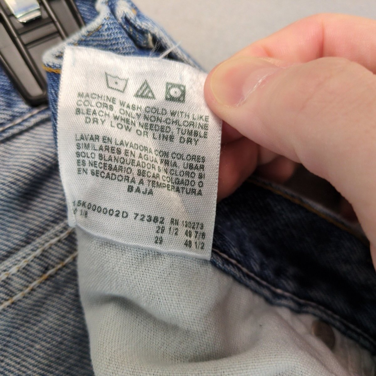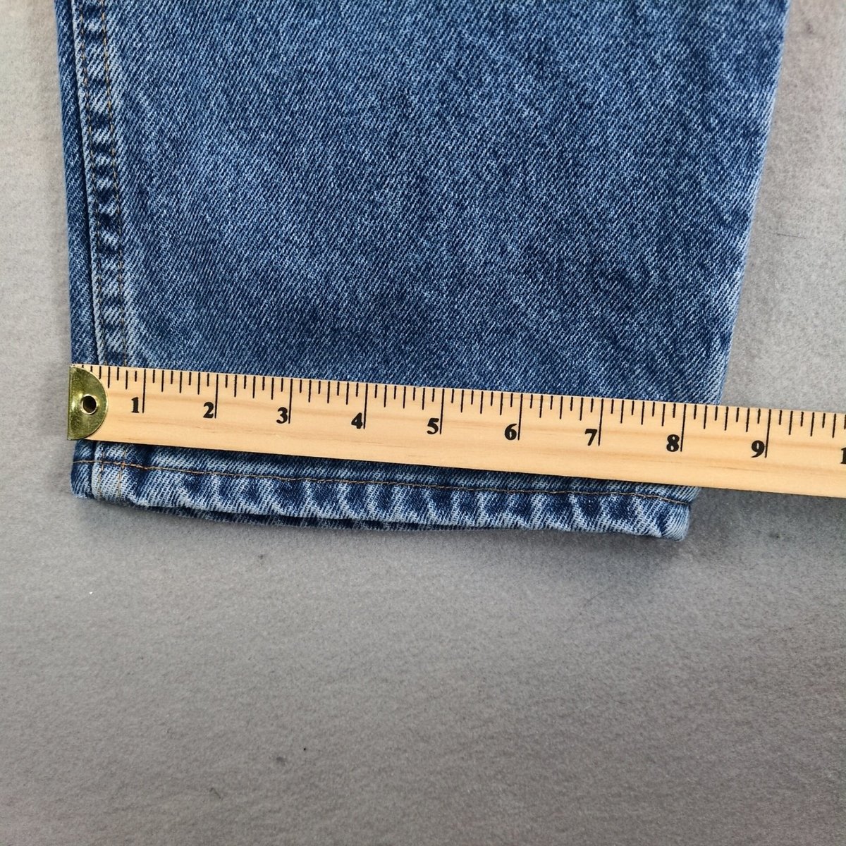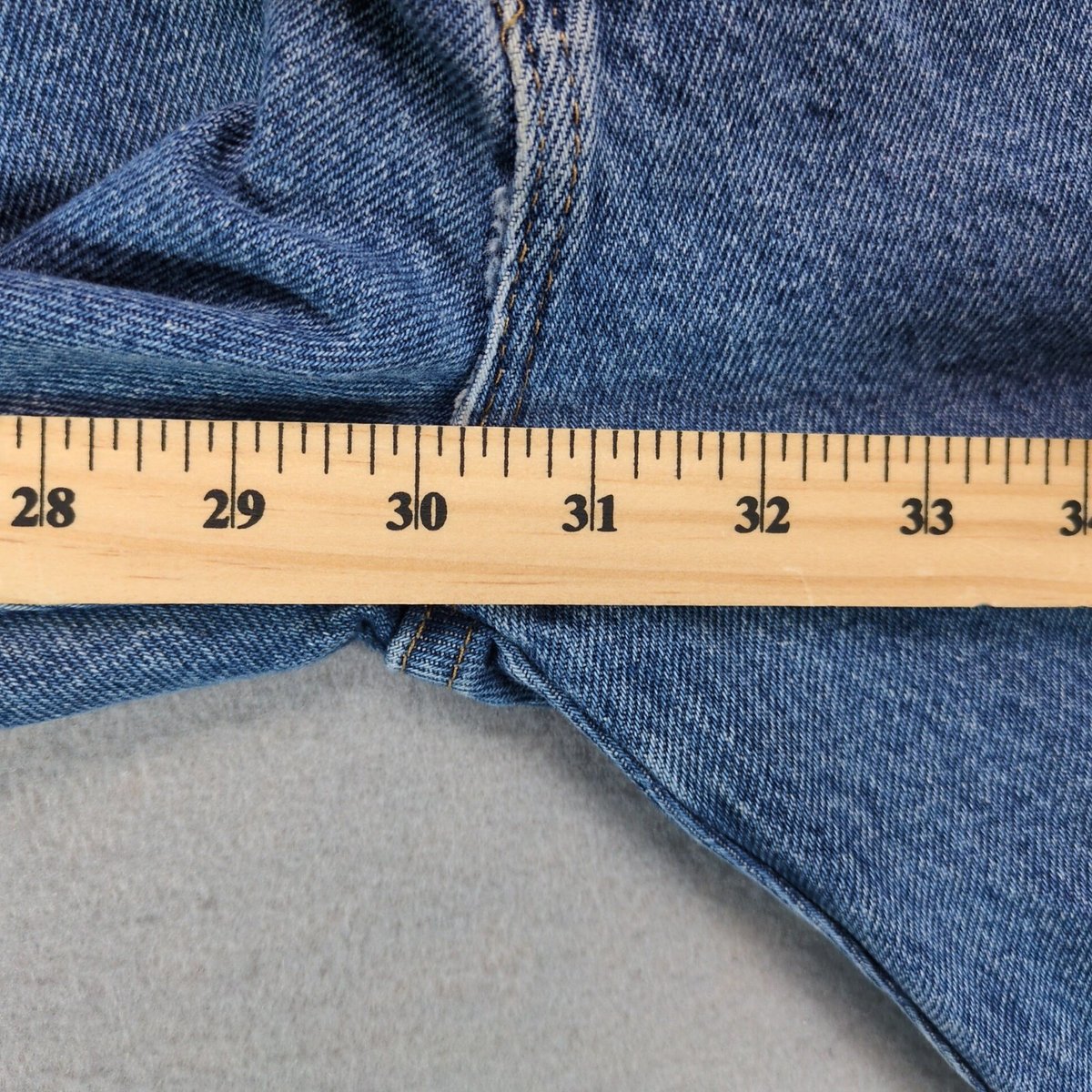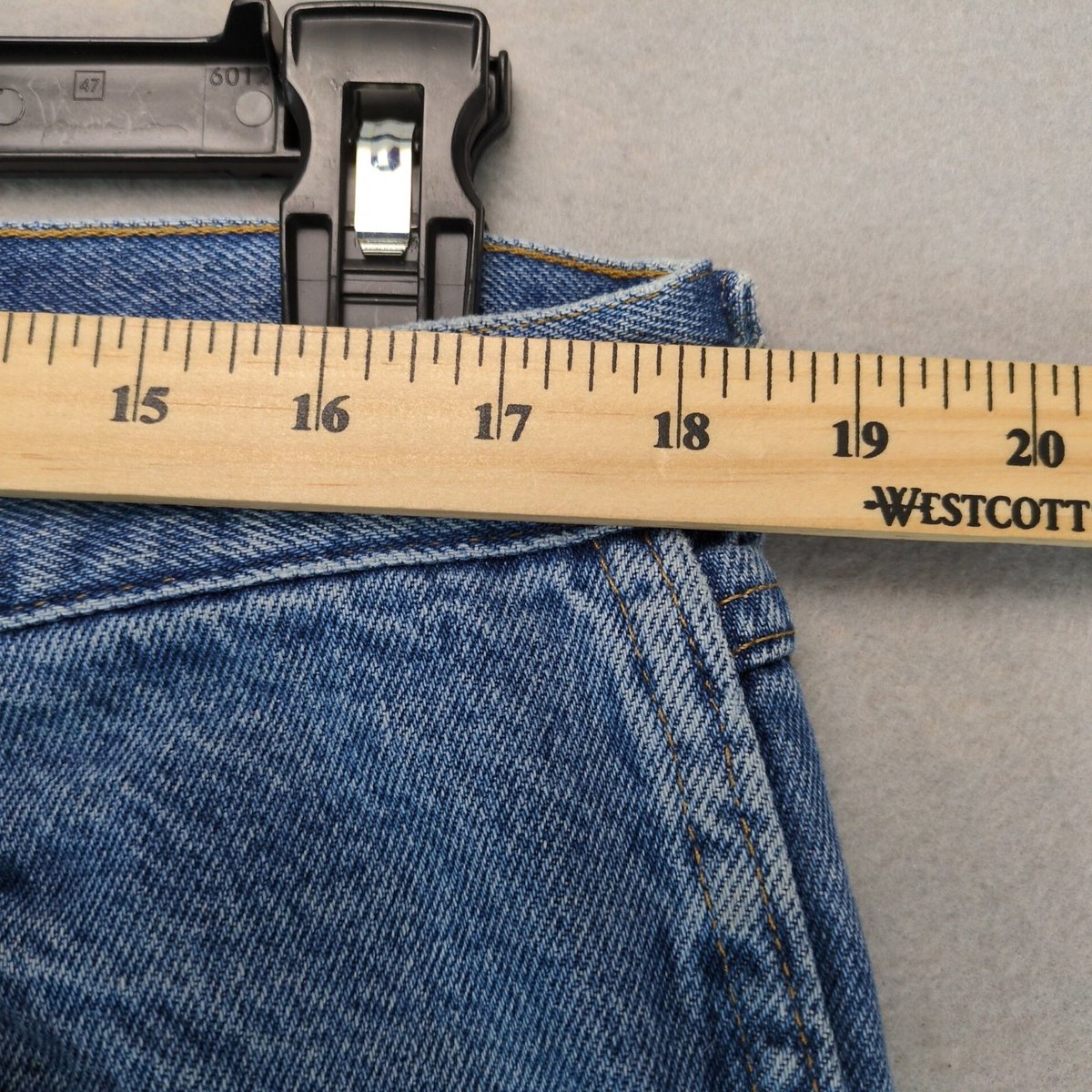 Features: Regular Fit, Straight Leg, Mid Rise, Medium Wash, Pockets, Easy Care, Solid Pattern, 38 in Measured Waist, 29 in Inseam, Button Zip Closure, 5-Pocket Design, Brass Rivets, Contrast Stitching, Logo, Machine Washable