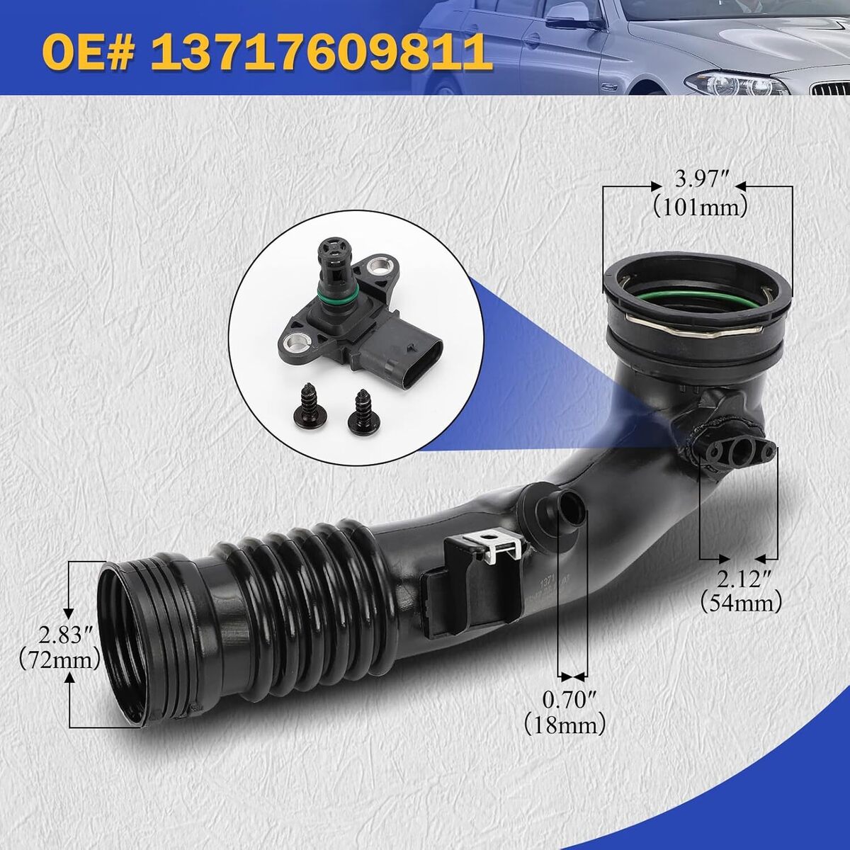 13717609811 Air Charge Turbo Induction Pipe with Sensor Kit for 2011-2017 BMW 535i 640i 740i ActiveHybrid X5 X6 3.0L - Air Turbocharger Pipe Hose Replaces# SK121304