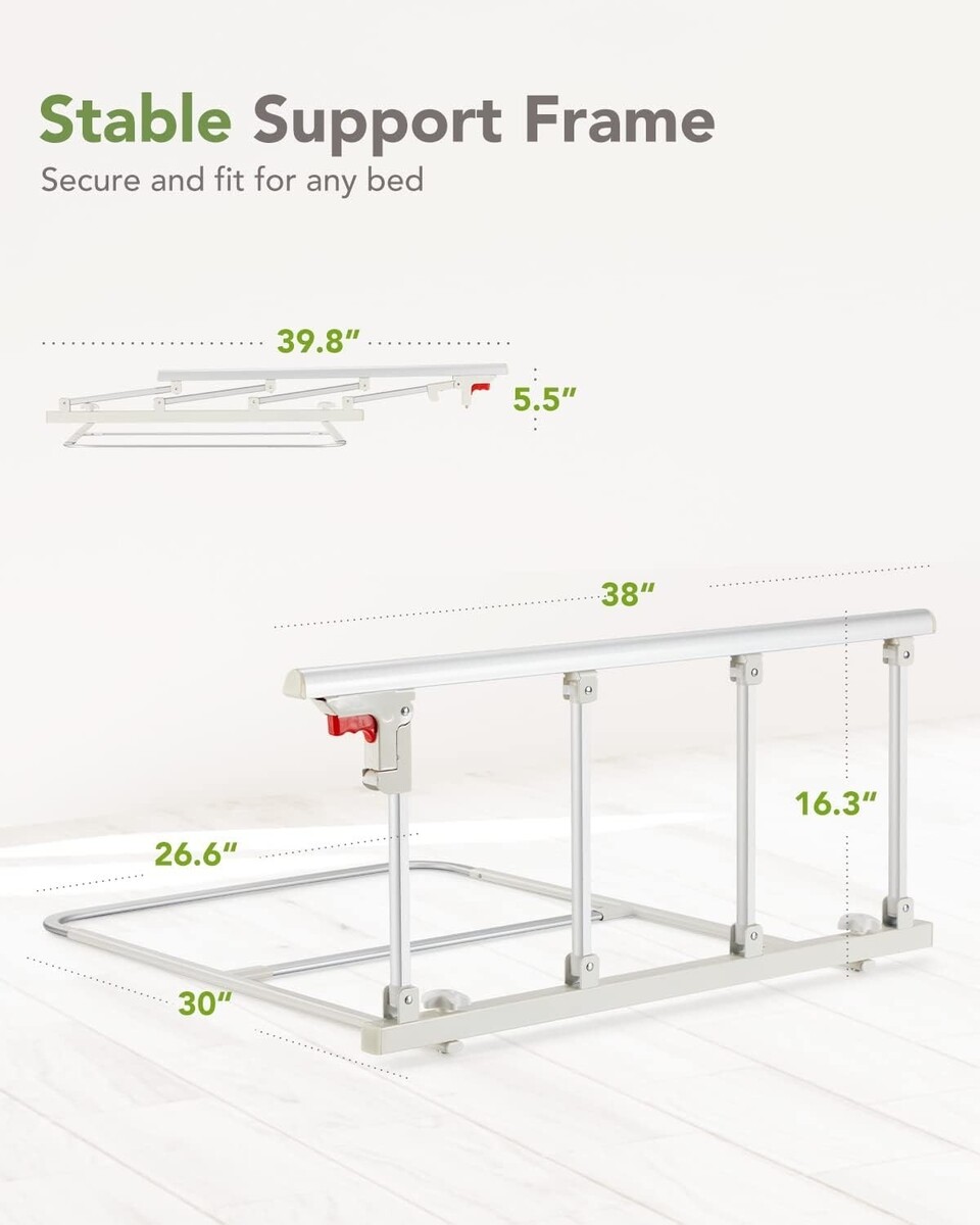OasisSpace Folding Bed Rails for Elderly Safety Fit King, Queen, Full, 38" x 16"