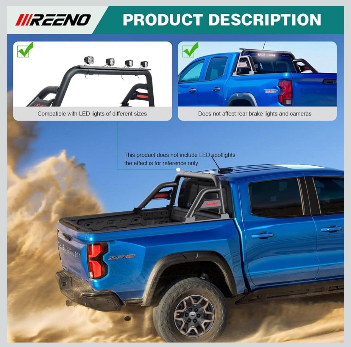 Reeno Black Roll Bar Bed Rack Tacoma Colorado Ranger Gladiator Frontier 2015 -24