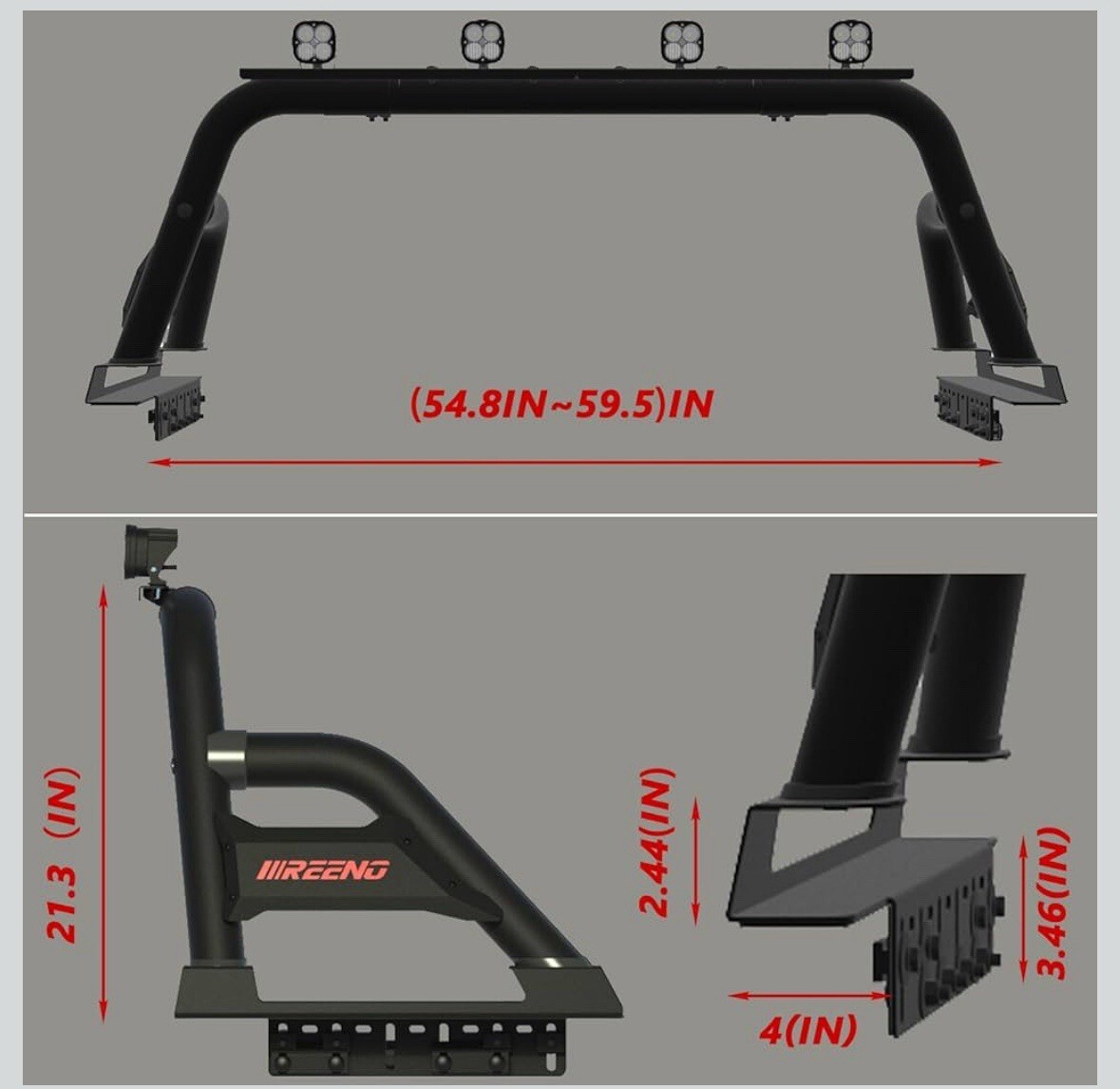 truck bed roll bar, chase rack, sport bar, Reeno roll bar, off-road bed rack, Tacoma Colorado Ranger Canyon Gladiator Frontier
