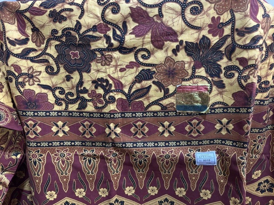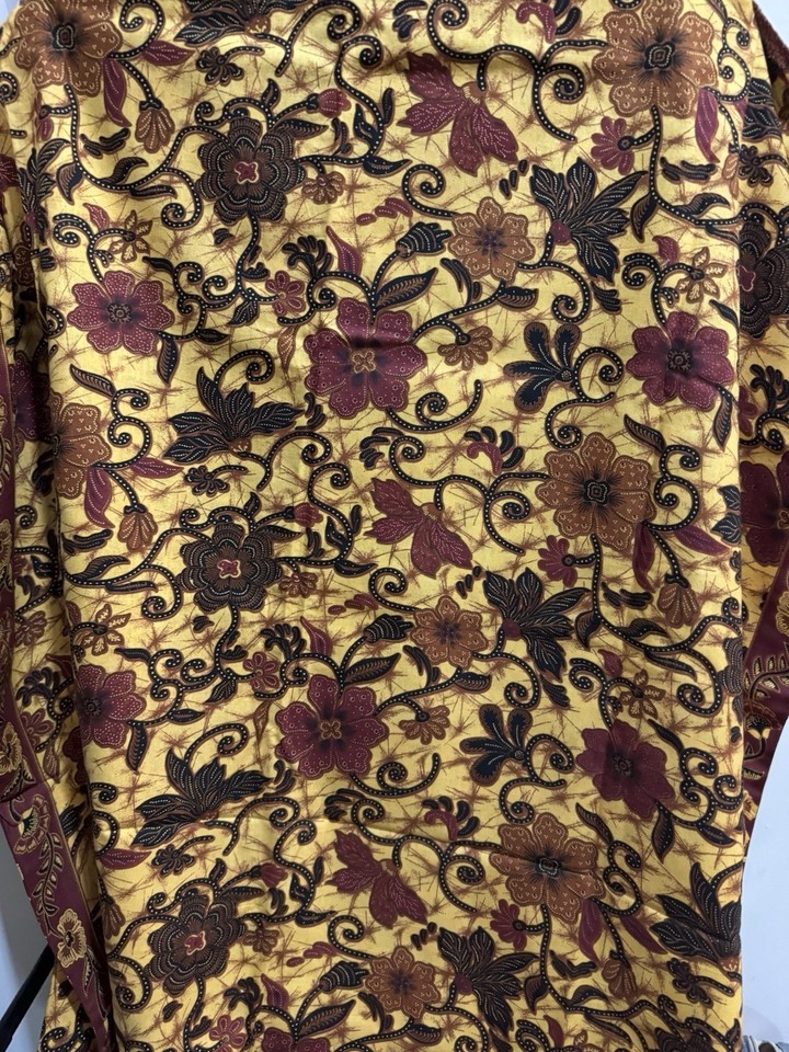 The product is Batik Cotton Fabric, a medium-weight fabric made of cotton with a traditional pattern known as Batik. This fabric is typically manufactured in Indonesia, known for its rich history and cultural significance in creating intricate and beautiful textile designs. The fabric is versatile and can be used for clothing, home decor items, and accessories, showcasing the unique and traditional designs that Indonesia is famous for.