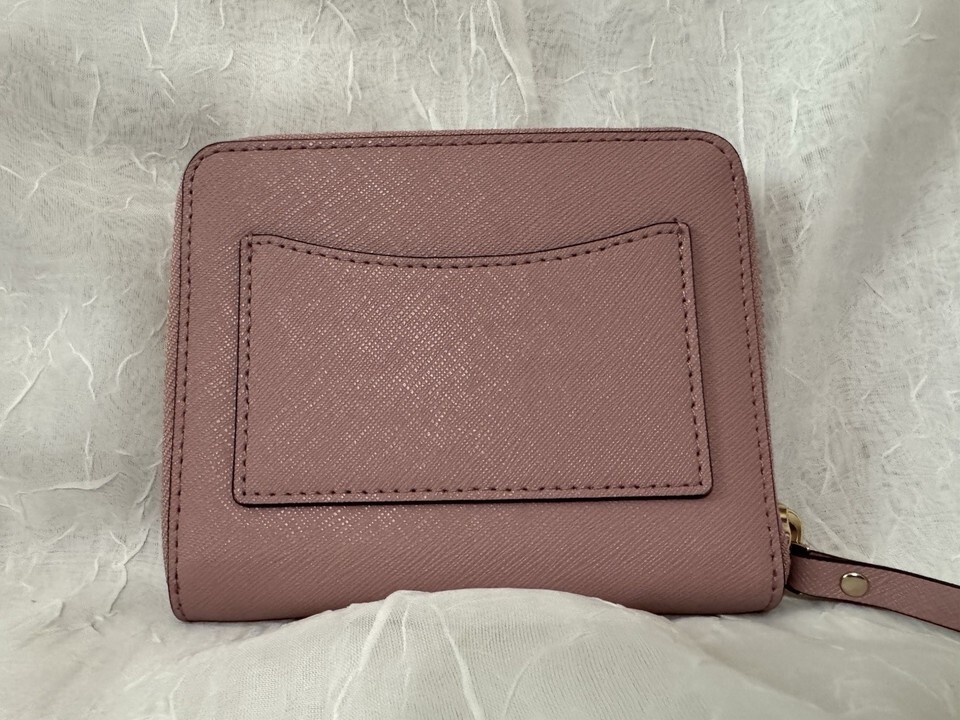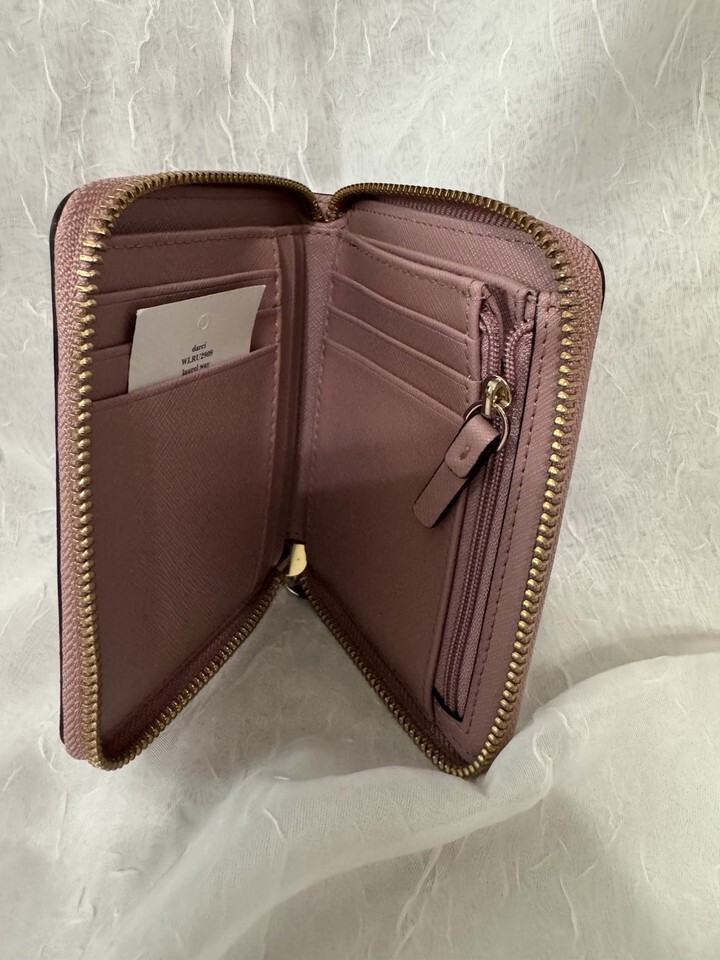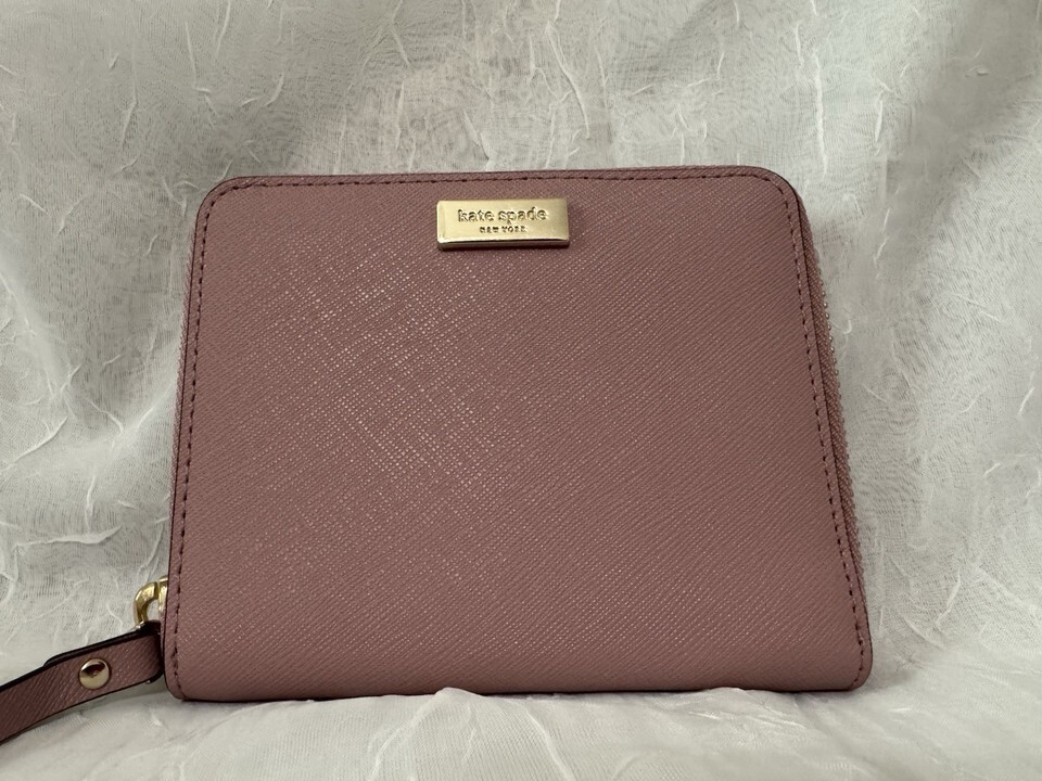 The Kate Spade New York wallet is a stylish accessory for women, featuring a solid pink color with leather material and credit card accents. It is the perfect blend of functionality and fashion, making it a practical yet chic choice for everyday use. The brand's signature style and high-quality craftsmanship ensure that this wallet is both durable and timeless, making it a versatile addition to any wardrobe.