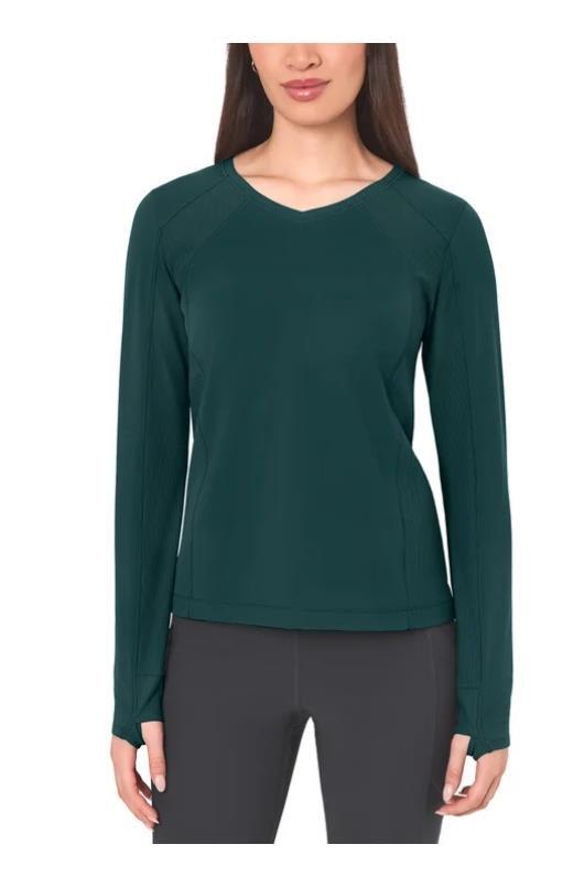 Mondetta Womens Top Green Active Long Sleeves Stretch Thumbholes Lightweight