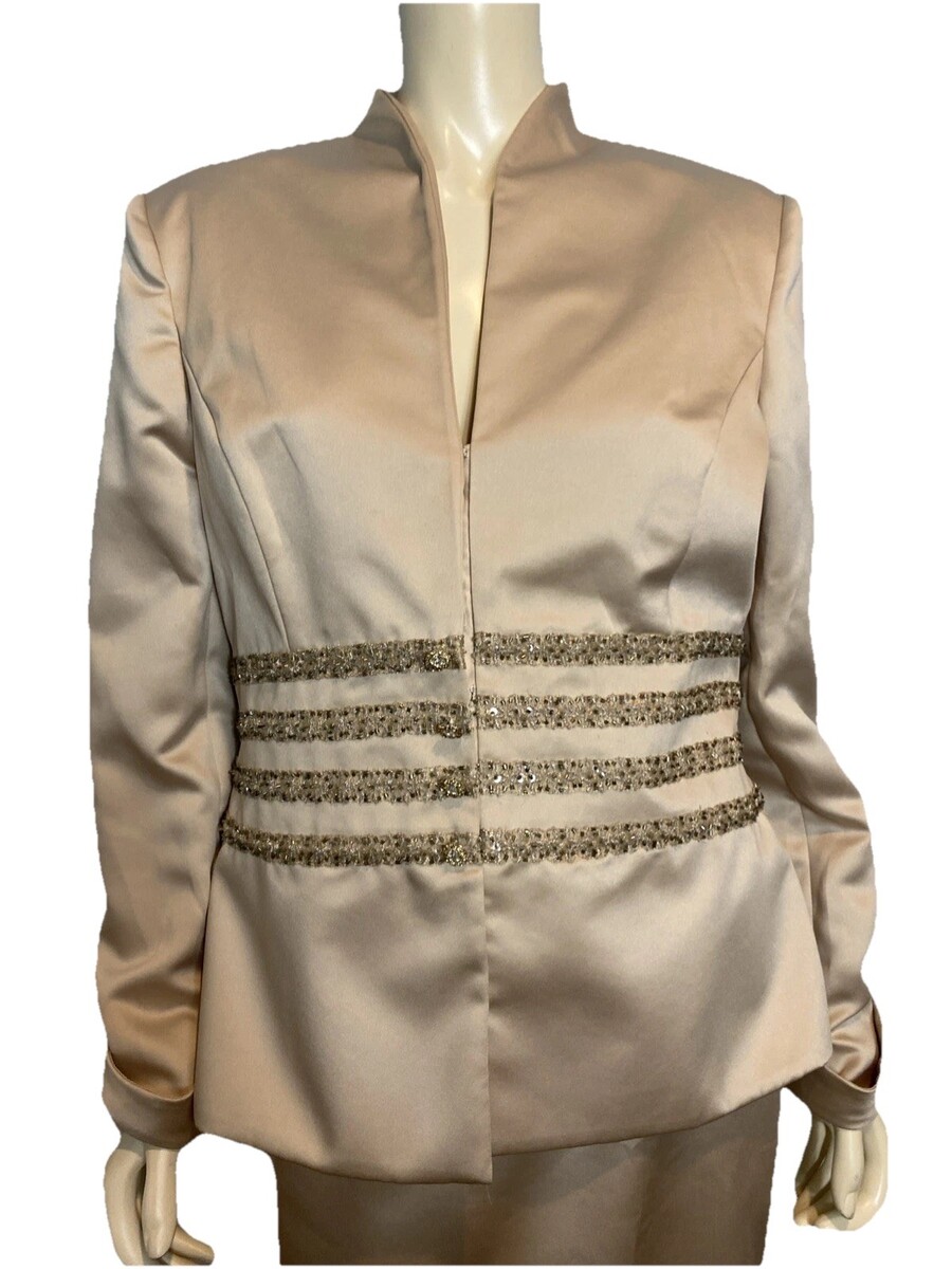 Vintage Rose Taft Women's 2-Piece Embellished Suit Champagne Size 14