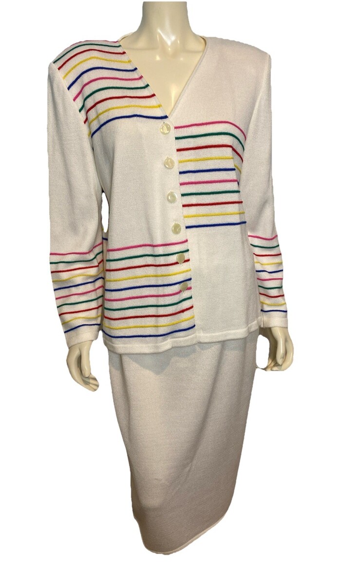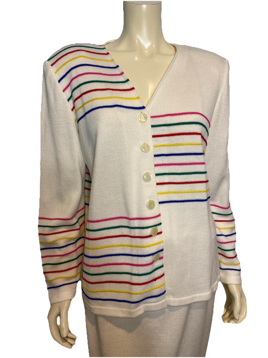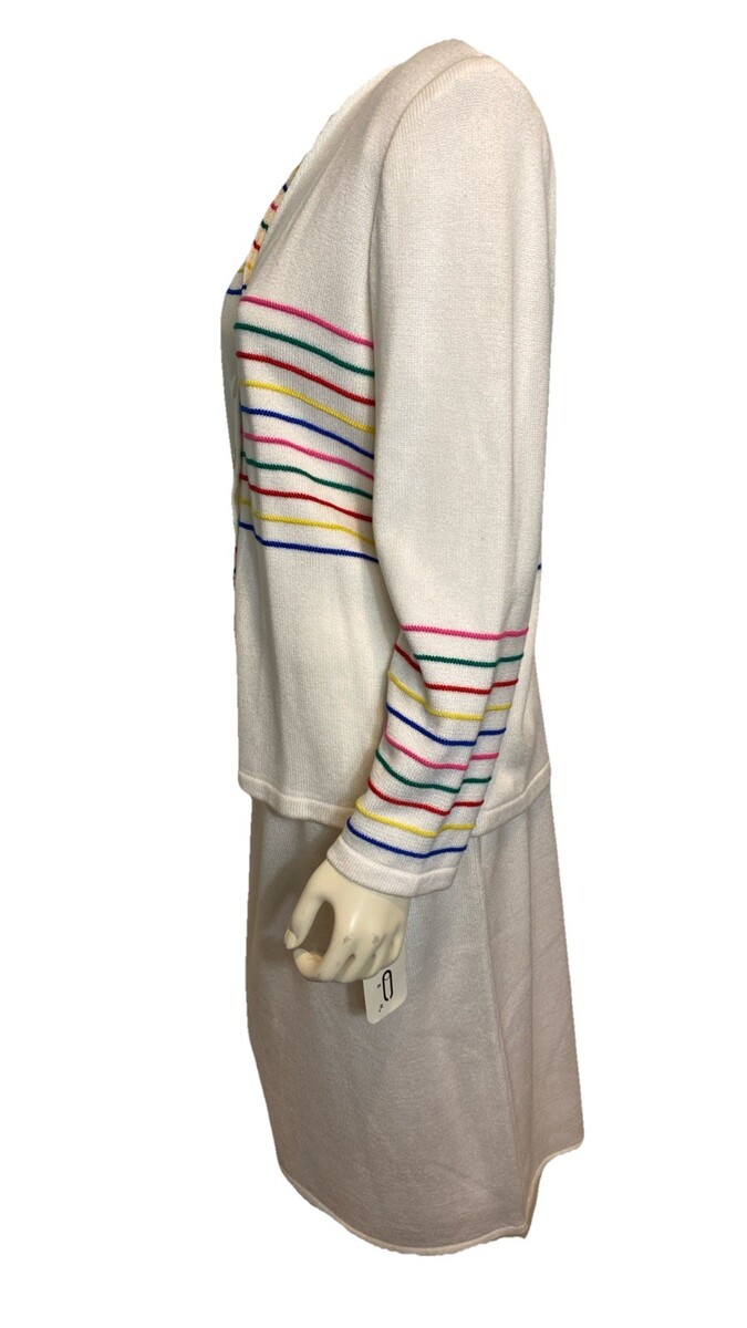 NWT Vtg. Epic Steven Cardigan Sweater w/ Skirt White w/Multicolored Stripes 14