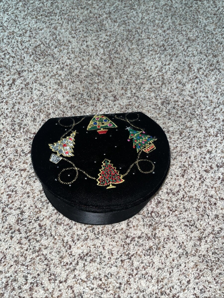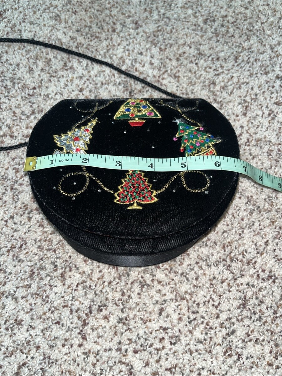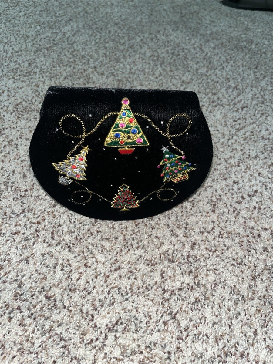 Vintage Christmas Purse Clutch Velvet Embroidered Trees Hand Bag Red Lining