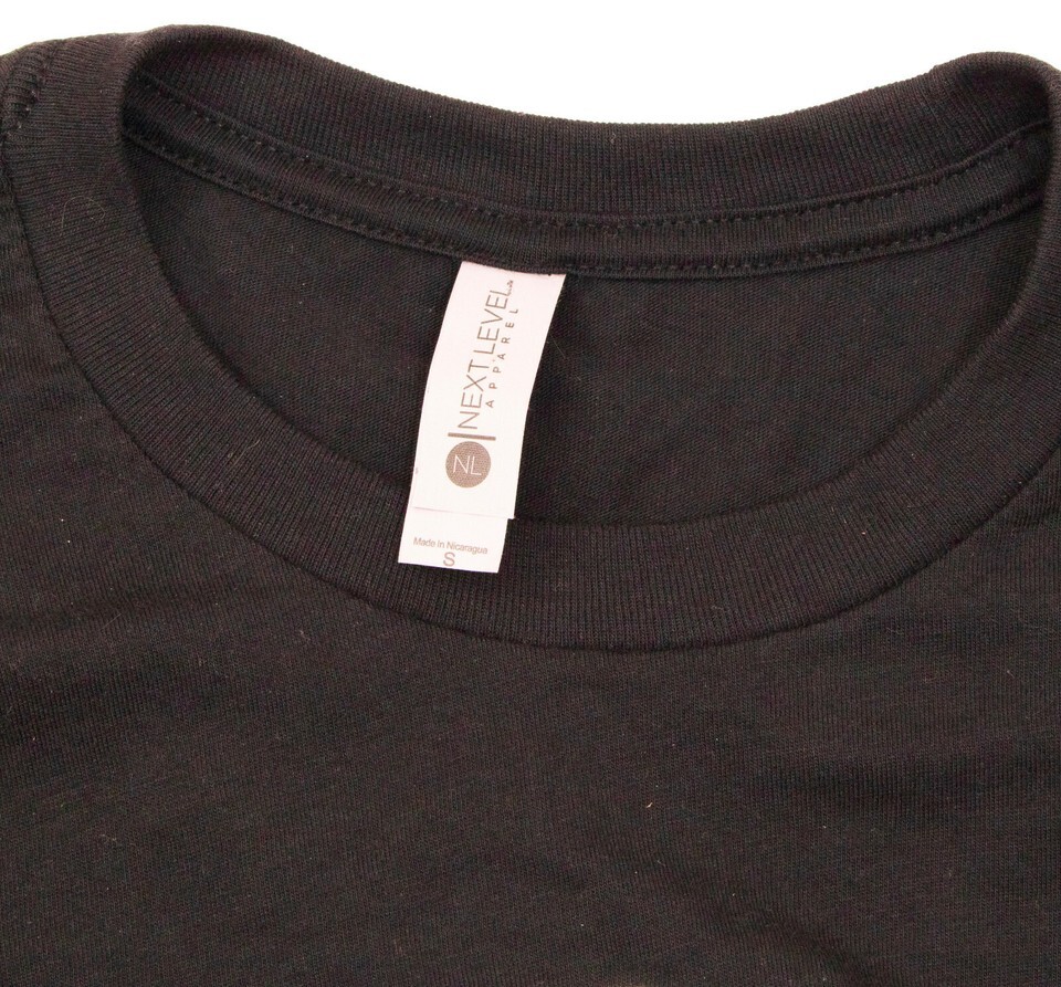 Manufactured by Next Level Apparel. EUC, Excellent Used Condition, Black man's small tee shirt.