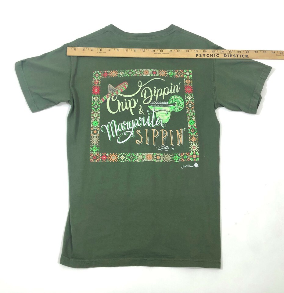 Jane Marie Women's Chip Dippin Margarita Sippin Olive Green Tee Small