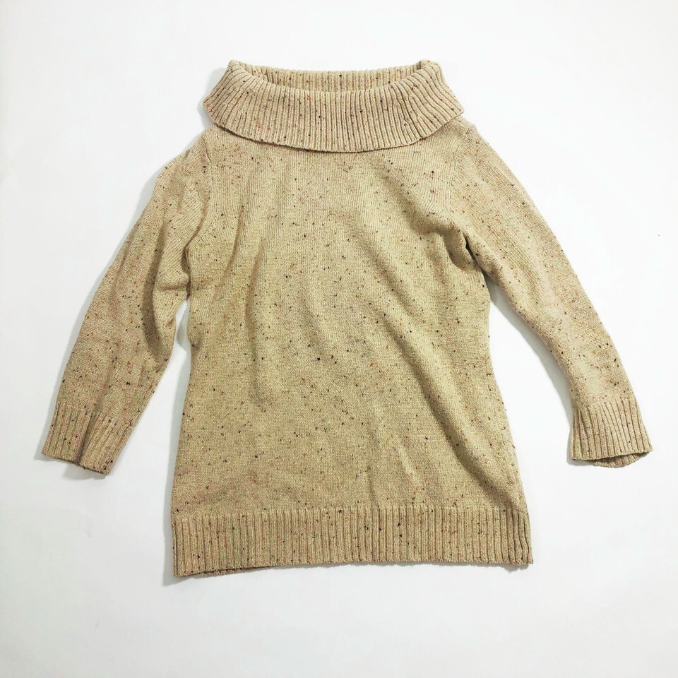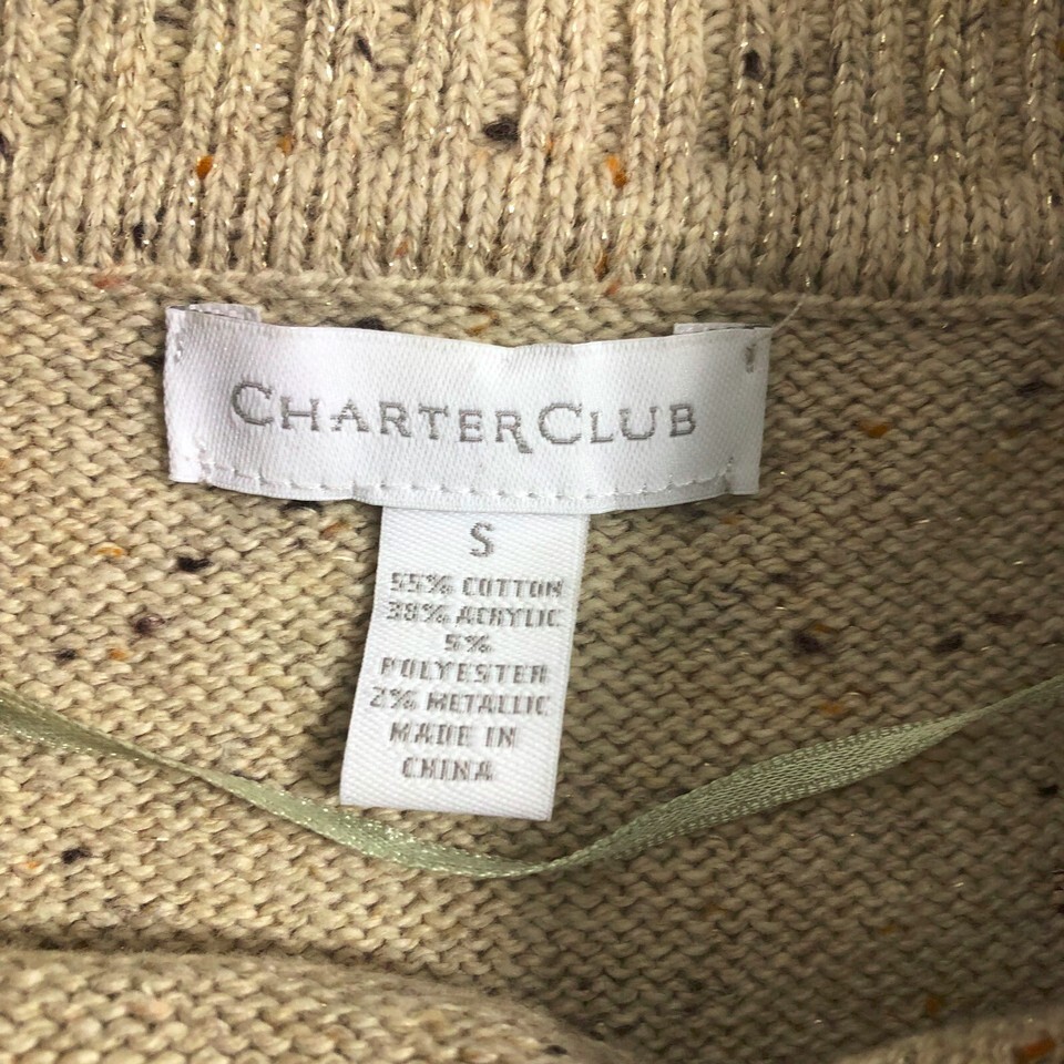 Charter Club Cowl Neck Sand Marbled Silver Metallic Thread Accent Sweater Small