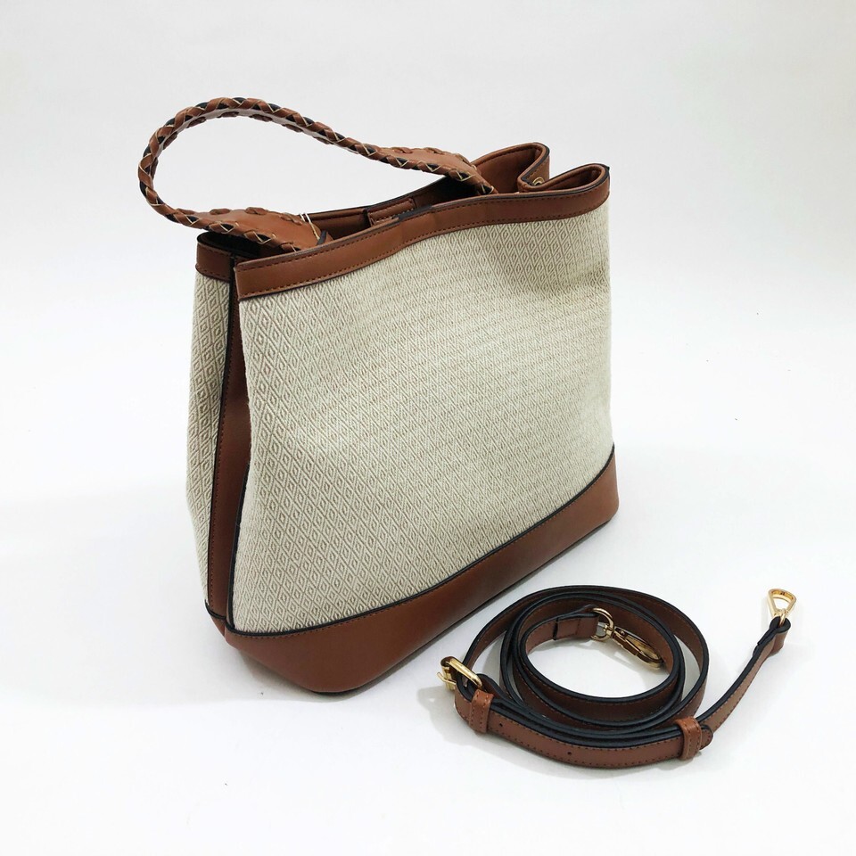 Jen & Co Satchel Maude 11.5x10x5.5 inches Ivory Polypro Fabric Handbag Purse