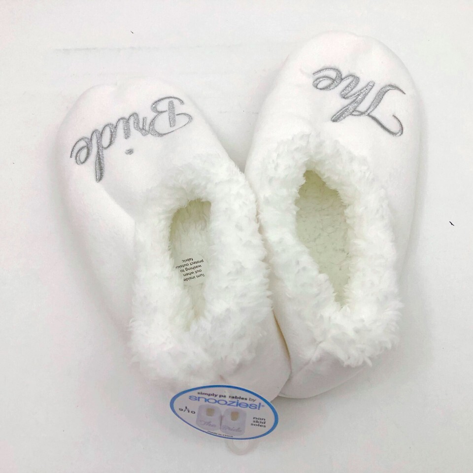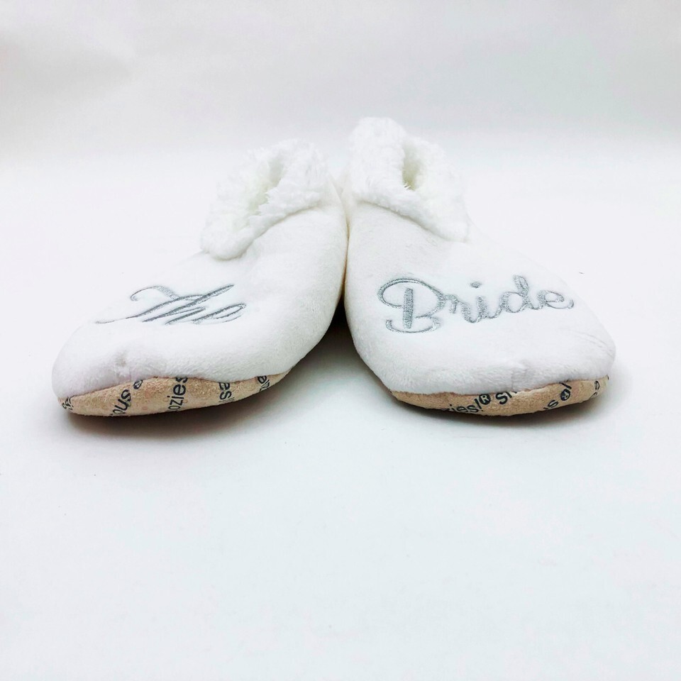 Snoozies Women's The Bride Slippers Non Skid Soles White Large 9/10