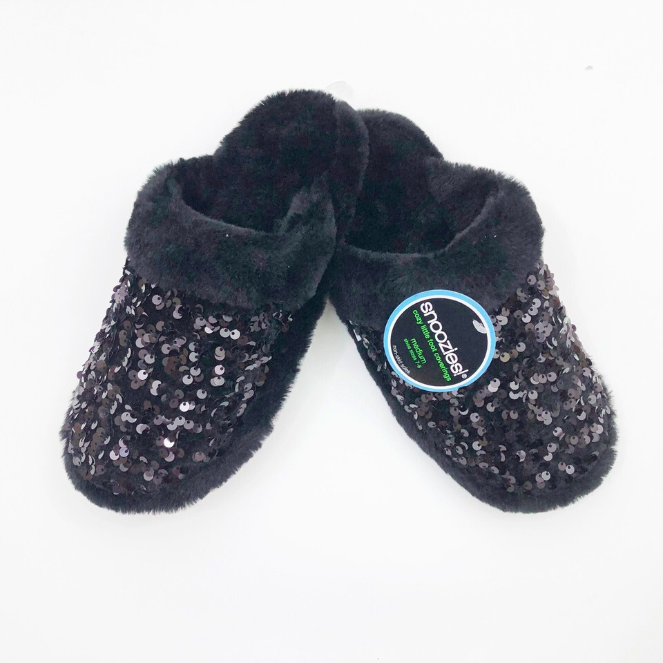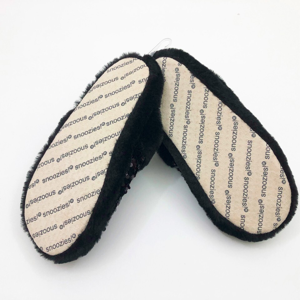 NWT, New With Tags. Snoozies Sales Samples. Black with multi-color Sequins Glam Slippers. Cute, Comfy warm with non-skid semi rigid soles. Who doesn't love a little glam? You can have glam and be comfortable too in your sequin Snoozies Slides. These soft easy slip on Glam Slide Slippers with sparkly black sequins are a great flashy gift idea for your favorite girl. Or if you're the girl, a treat for yourself. Fun slippers with non-skid soles.