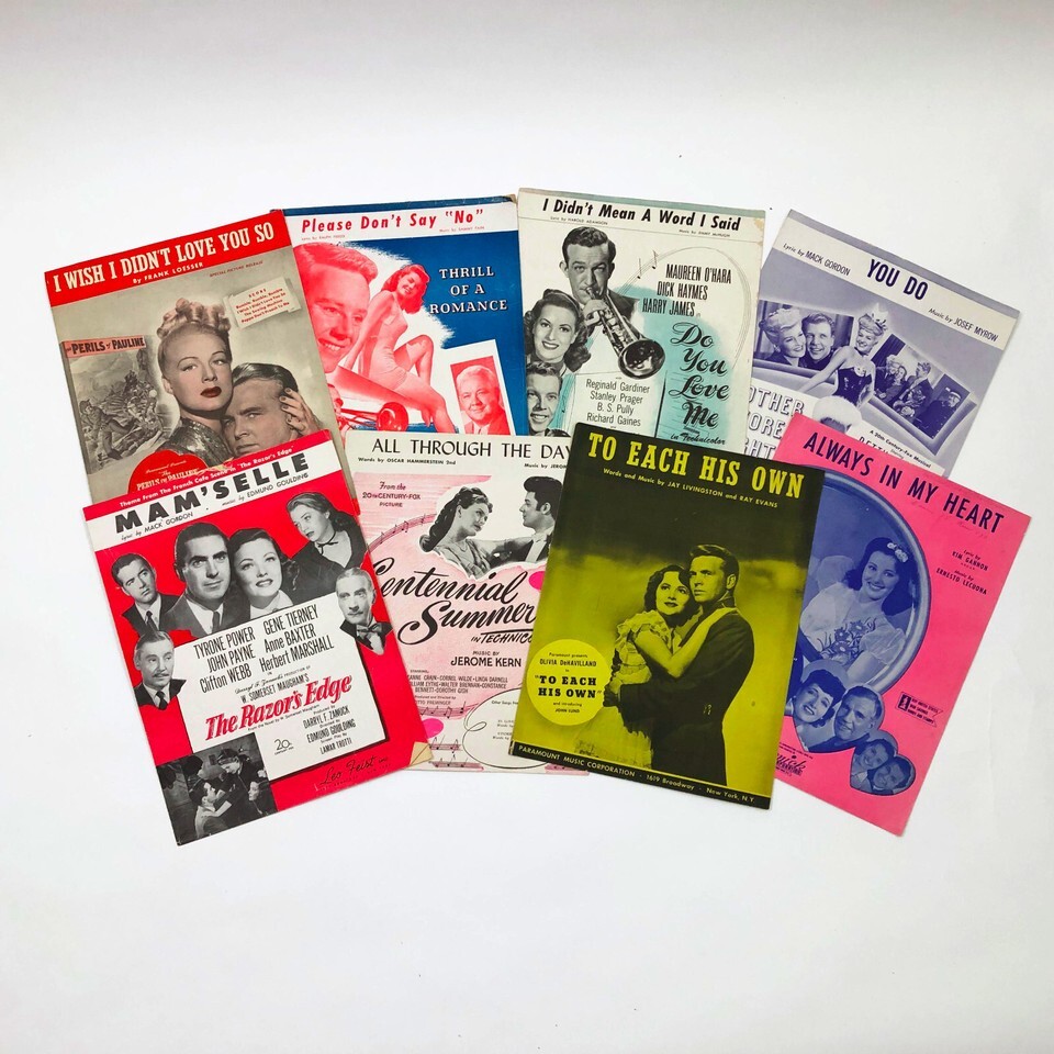 Vintage set of 8 Music Sheets from various musicals and movies.