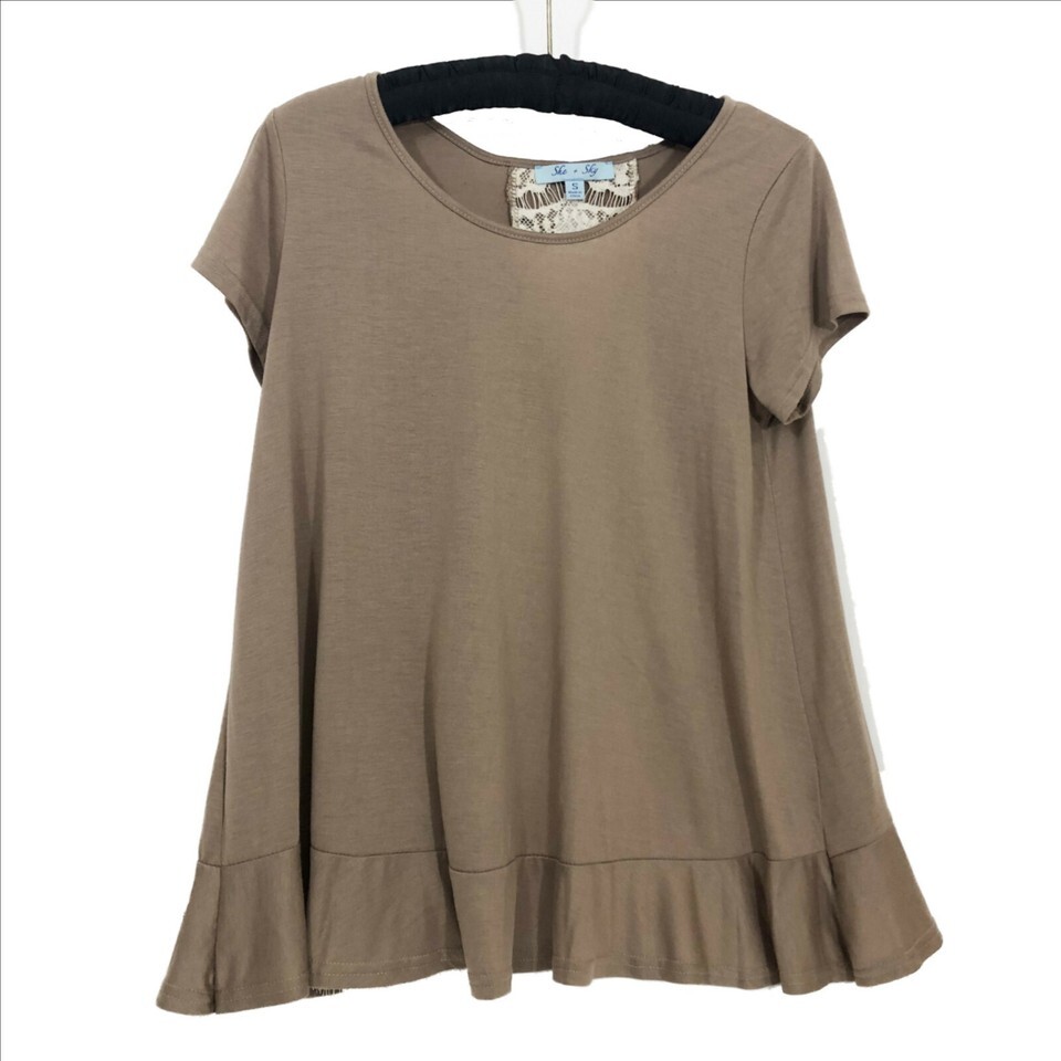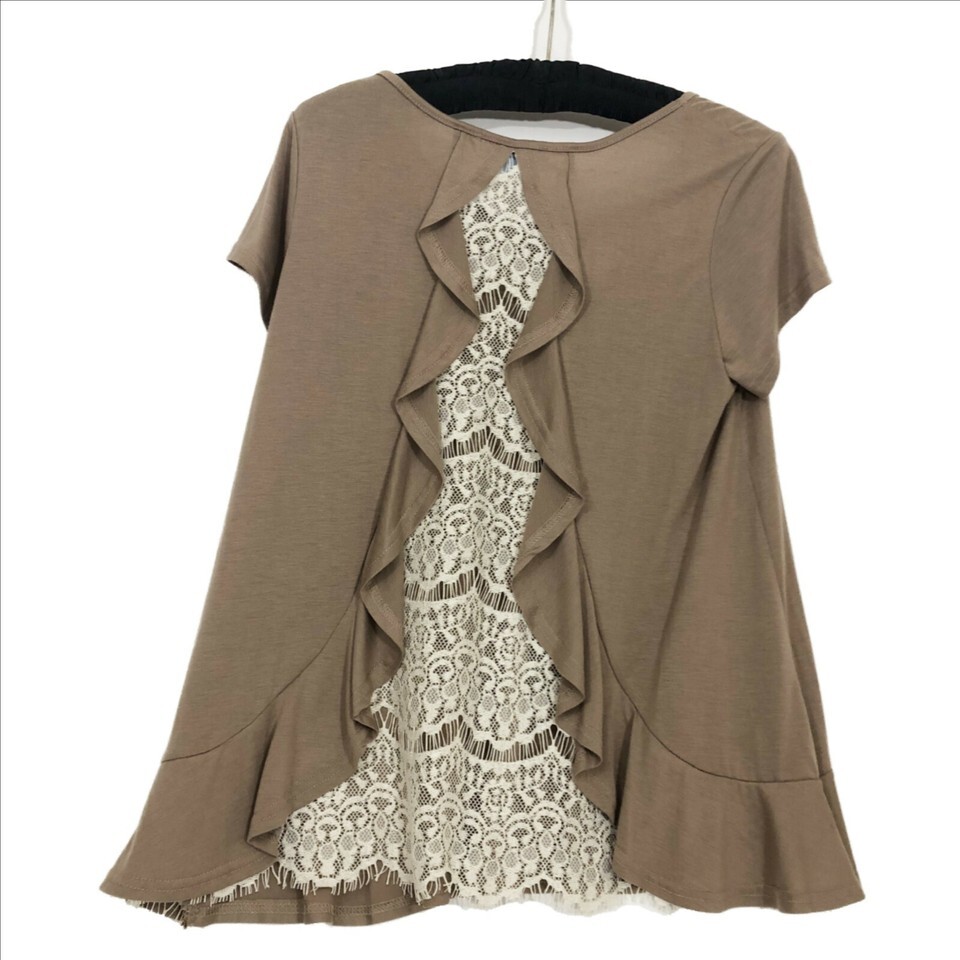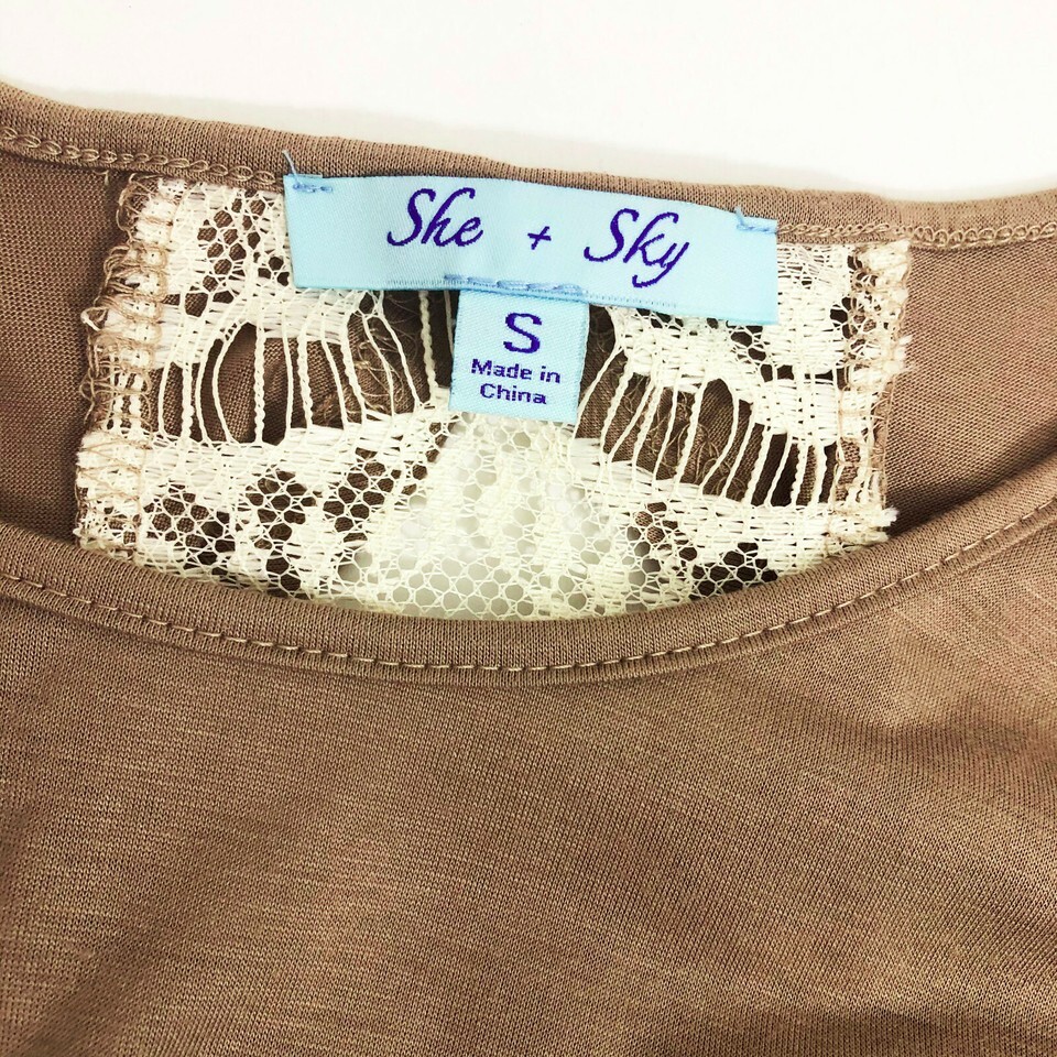 She and Sky Women's Taupe and Ivory Lace Top Woman's Small