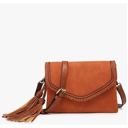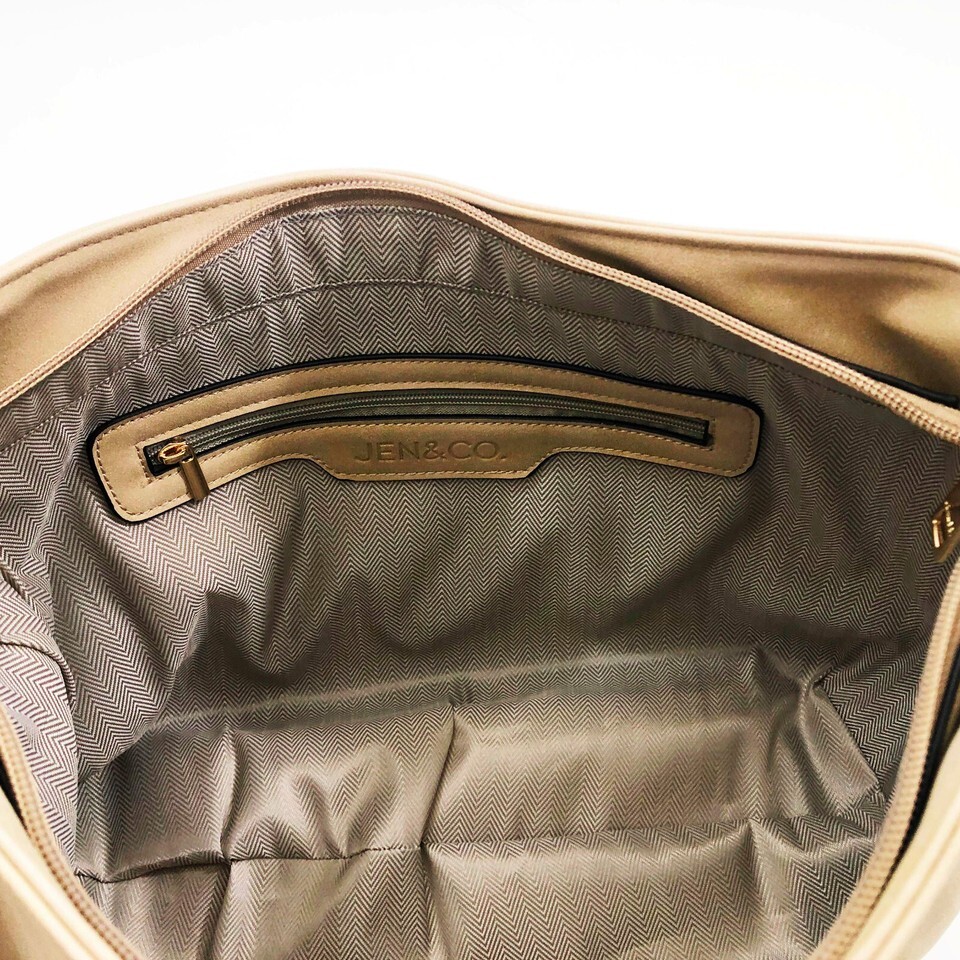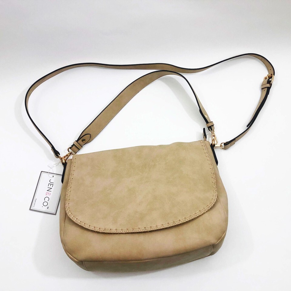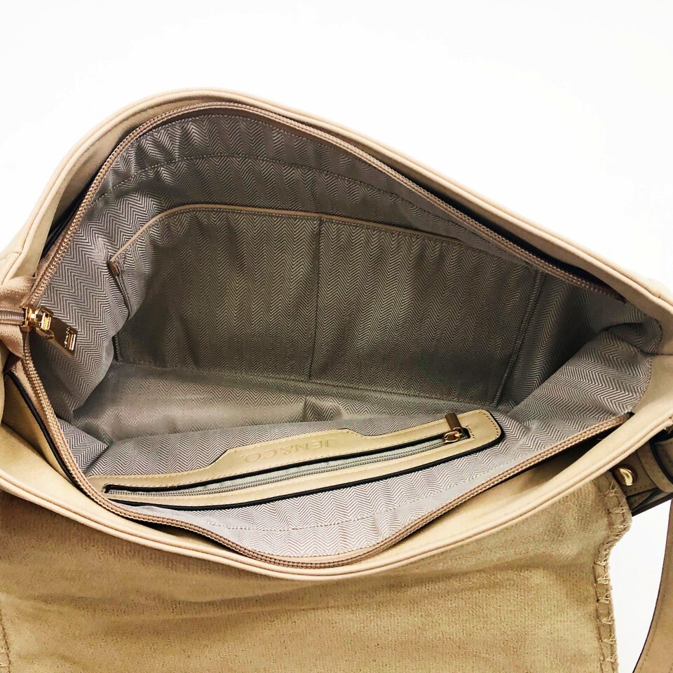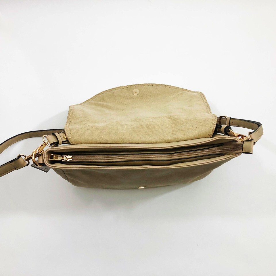 Jen & Co Jess Vegan Stitched Shoulder Bag Faux Suede Tan 15x11x3.5 inches
