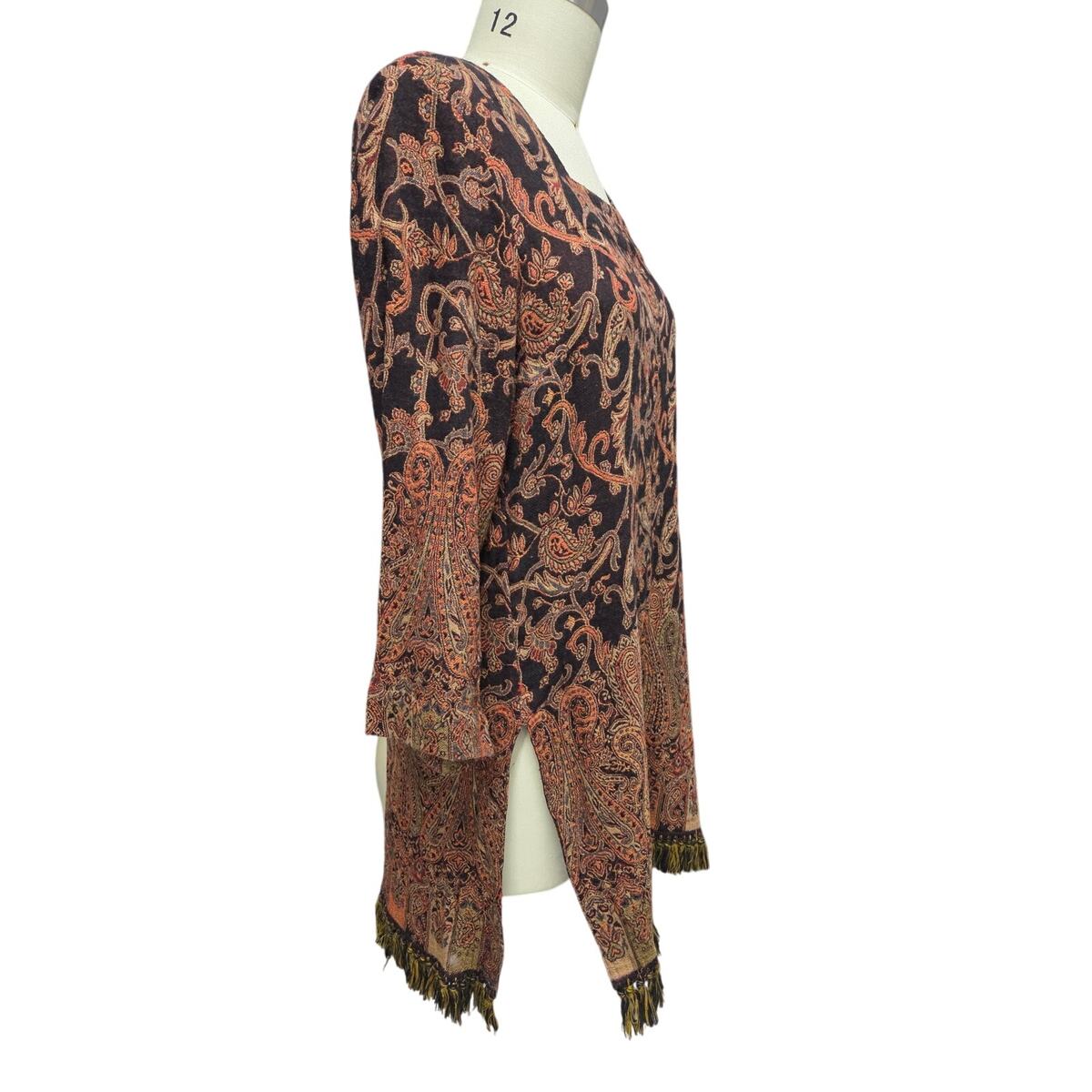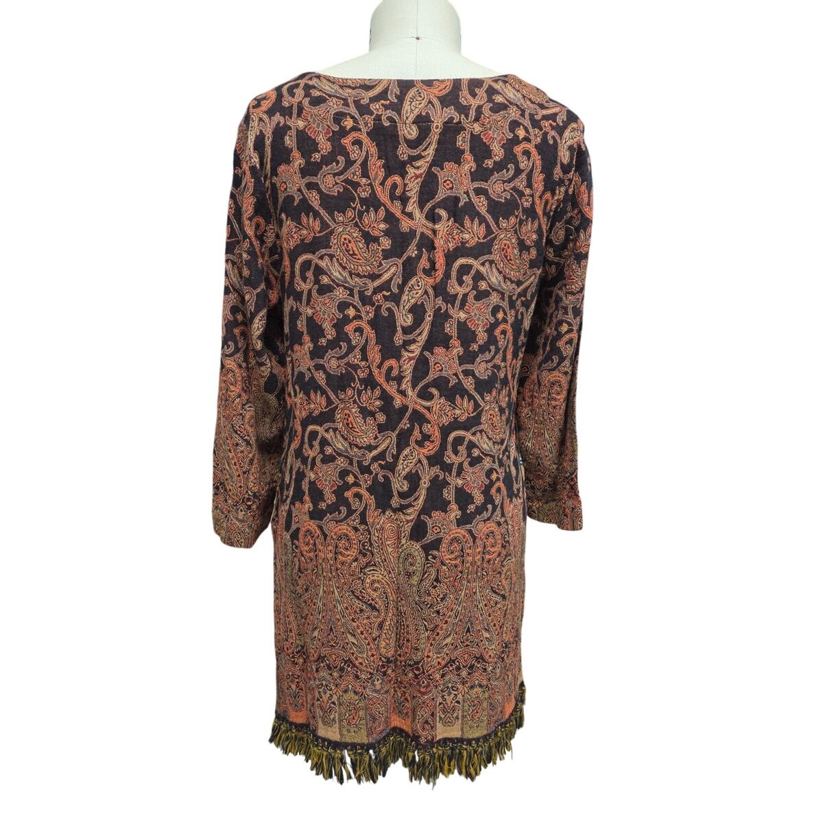VTG Early 2000s Soft Surroundings Wool Rayon Tunic Fringe Hem Boho Luxe PL