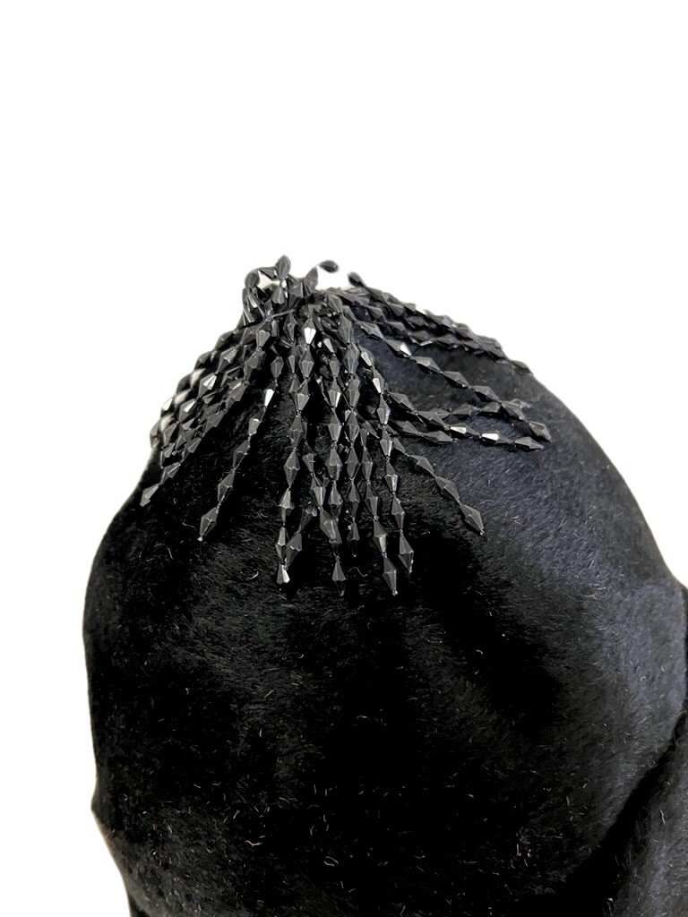 Retro 60s Helios Italy Black Fur Wool Helmet Hat Small Beaded Tassel VTG Mod