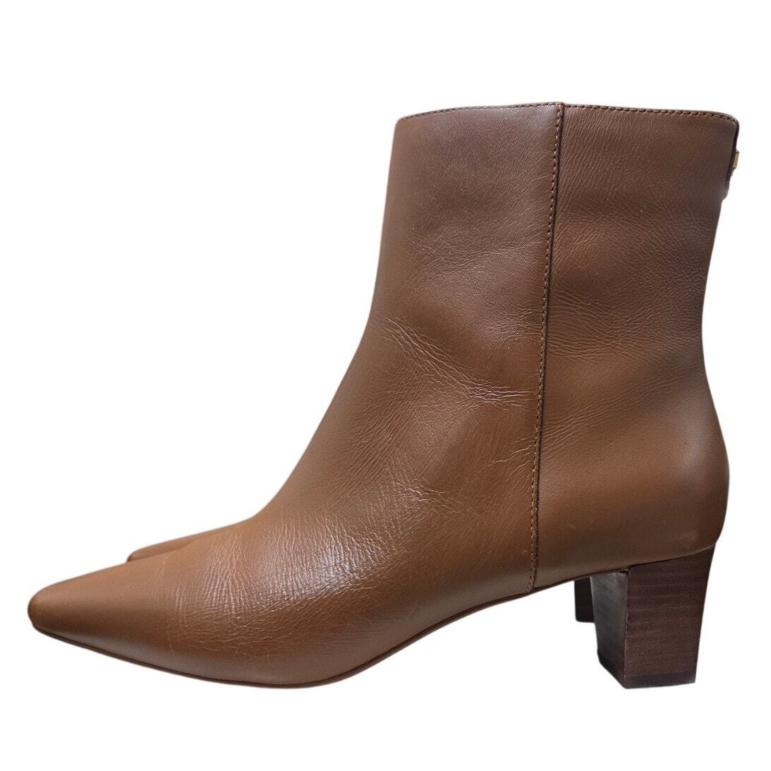 Lauren Ralph Lauren Willa Brown Leather Bootie — Wood Heel Zip Ankle 9