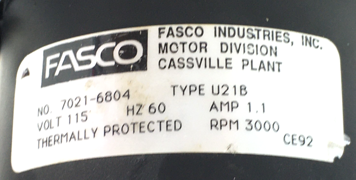This is FASCO 7021-6804 Draft Inducer Blower Motor Type U21B 115V 3000 RPM used part.