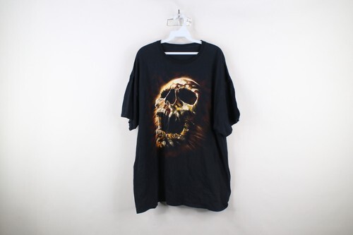 Vtg 90s Y2K Streetwear Mens XL Distressed Fantasy Skeleton Skull Mummy T-Shirt