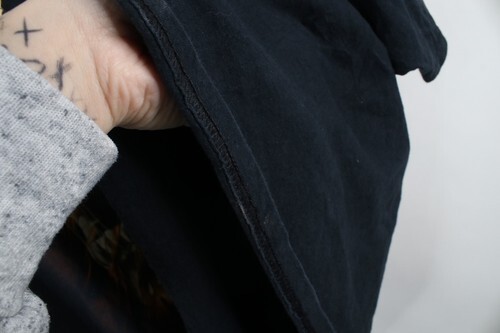 Hole front bottom. Blemishes back bottom left, left side. Graphics, color faded. Pilling
