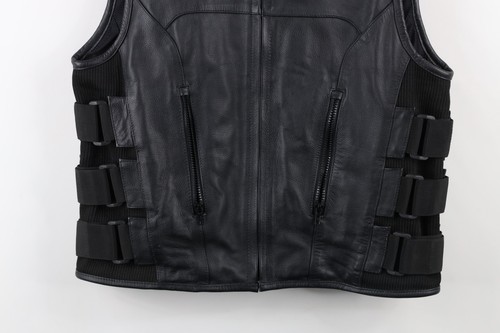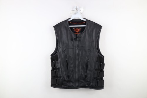 Vintage Y2K Streetwear Mens Medium Heavy Leather Strap Tactical Motorcycle Vest