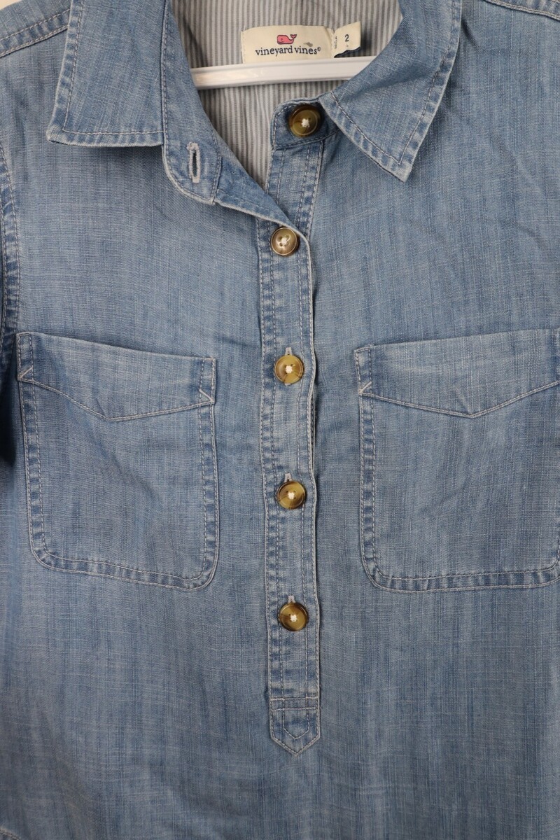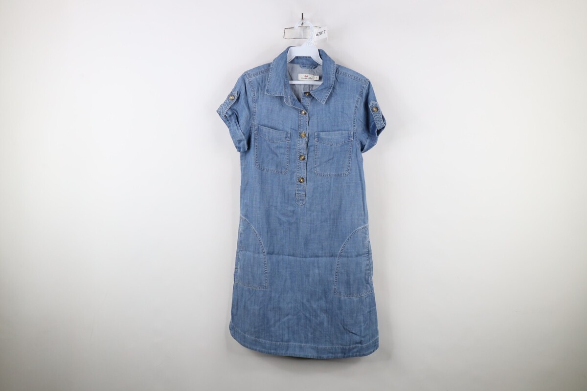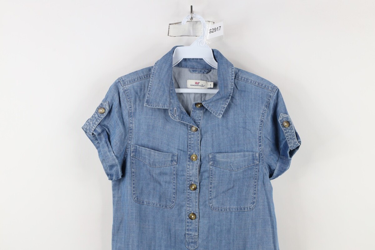 Vineyard Vines Womens Size 2 Margo Utility Chambray Denim Shirt Dress Blue