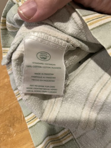 (2) Laura Ashley Green Yellow Striped Vintage Pillowcases Soft Standard
