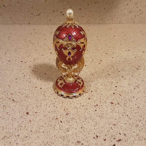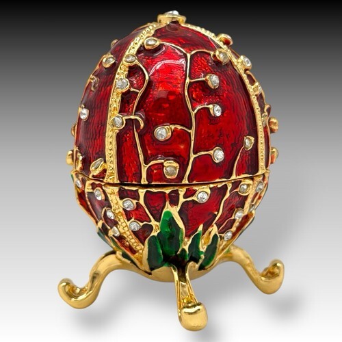 Russian Faberge Egg Pendant with a Swirl design in Red/Green colors
