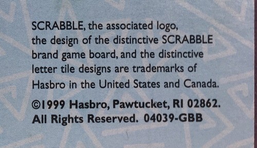 Game is complete and contains 2-sided game board, 101 letter tiles and 44 scoring chips and instructions on inside of box. Box has light wear and tape in some spots.