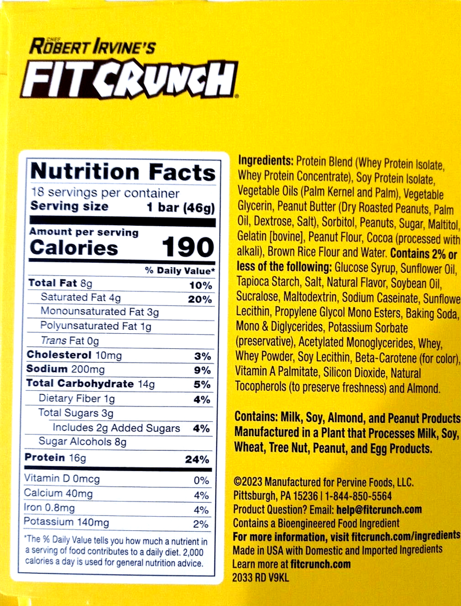 Chef Robert Irvine’s Fit Crunch High Protein Baked Bars 18/Pack EXP 09/2026