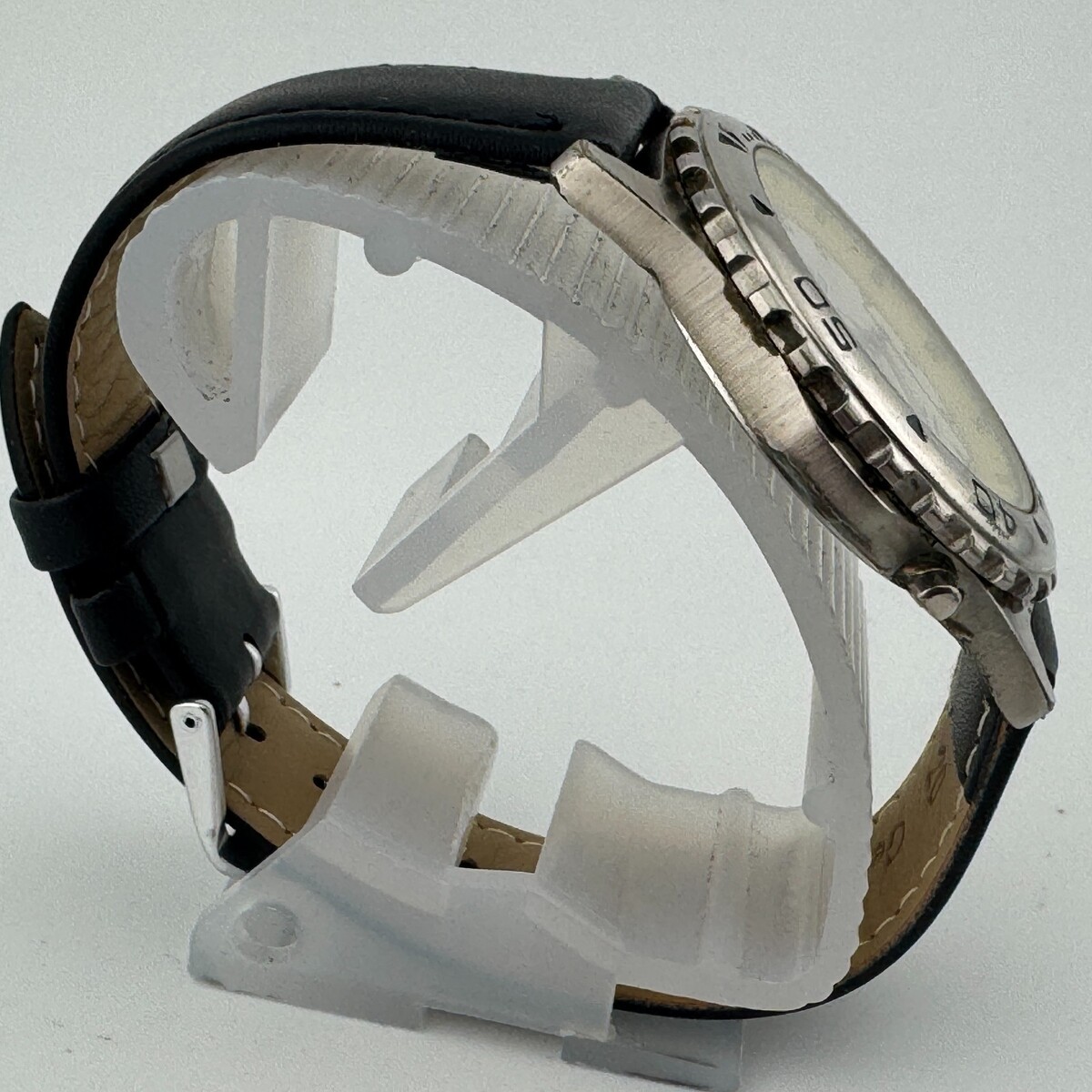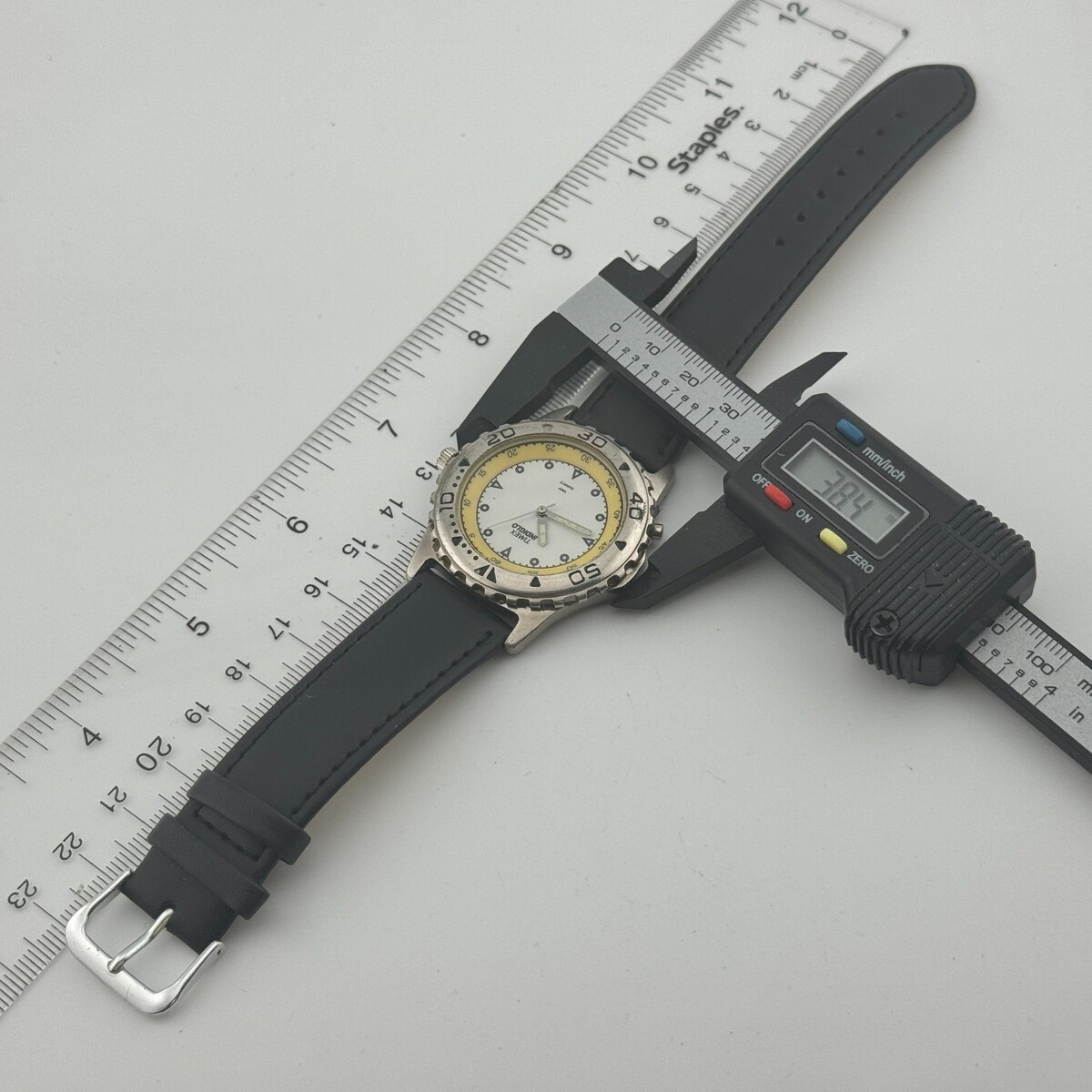VTG Timex Quartz Watch Men Silver White Rotating Bezel Leather Date New Battery