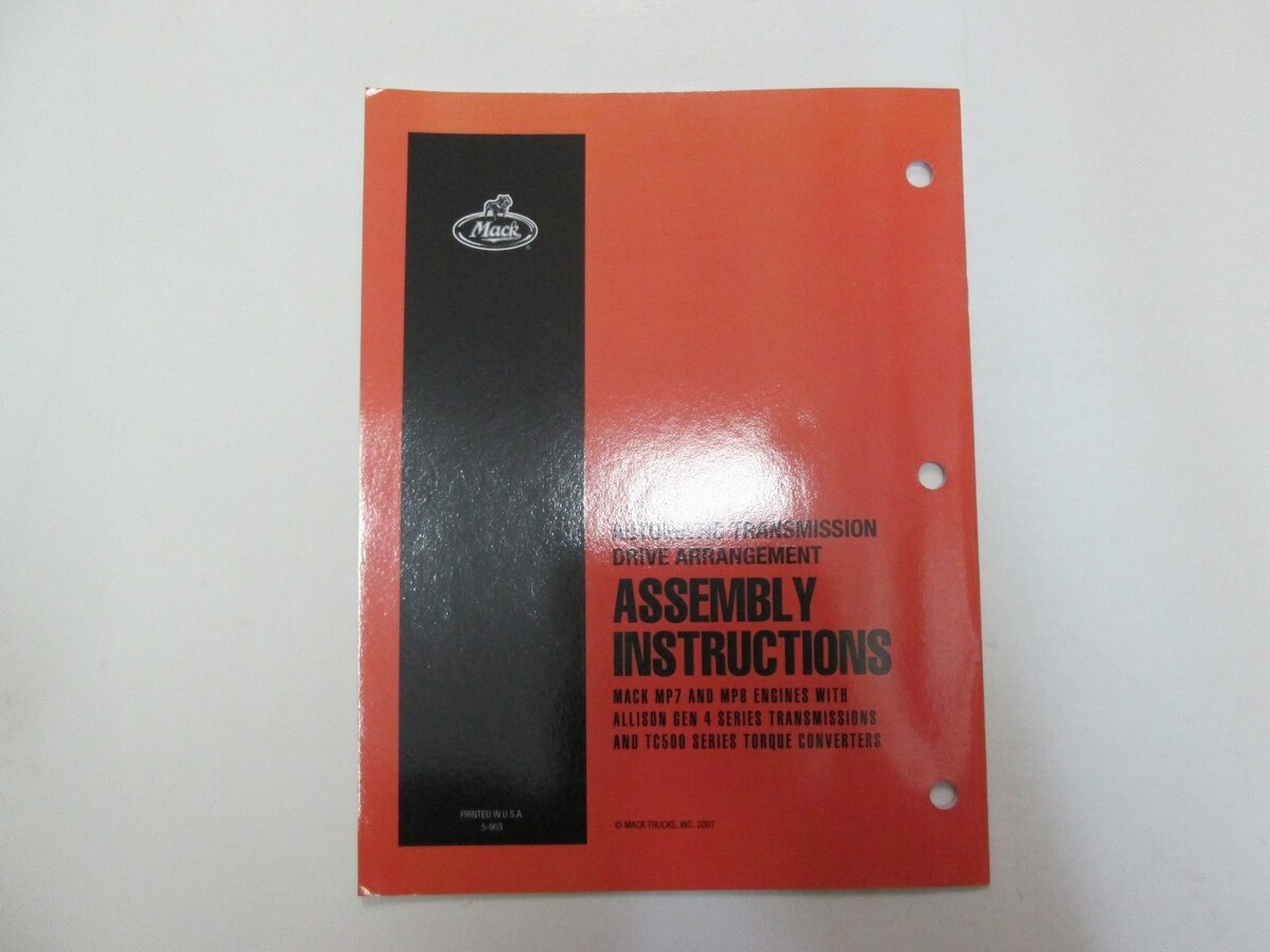 2008 Mack Automatic Transmission Drive Arrangement Assembly Instructions Manual