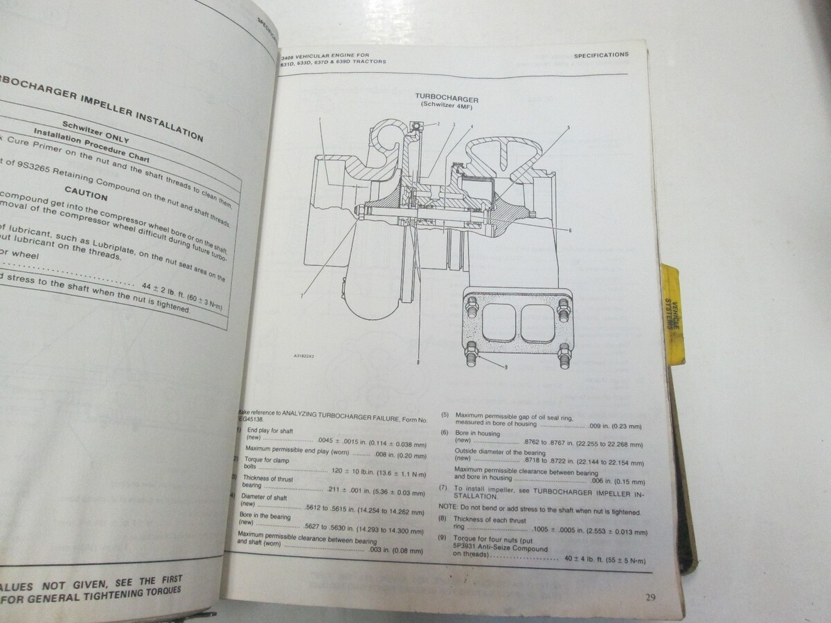 Caterpillar 631D 633D 637D 639D Traktor Schaber Rad Wasser Beschadigt Ordner OEM