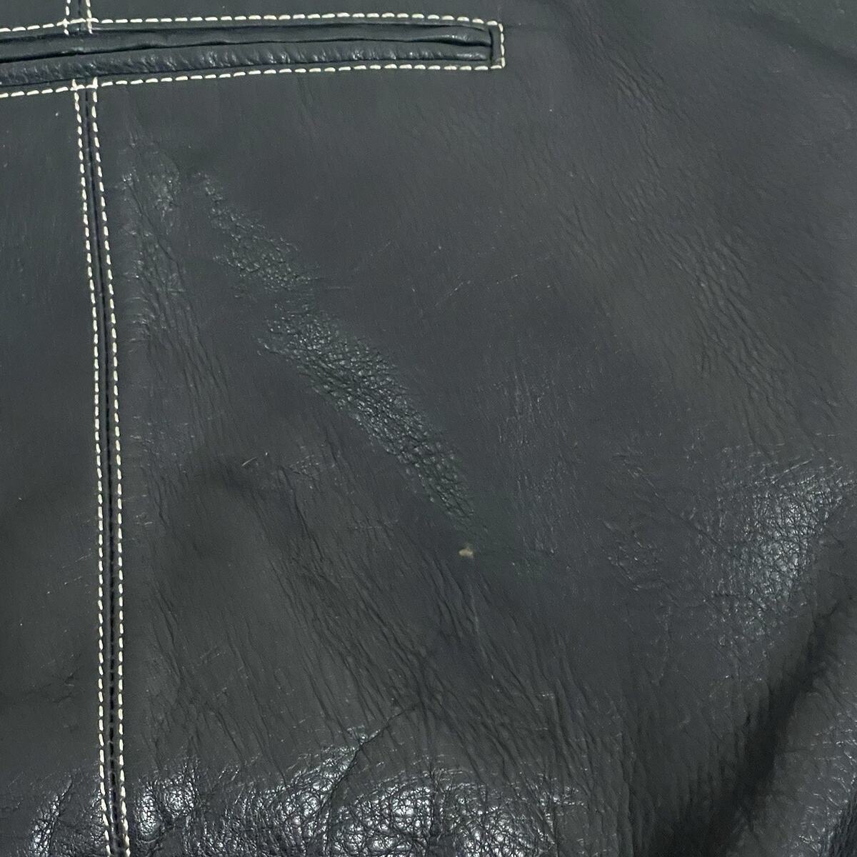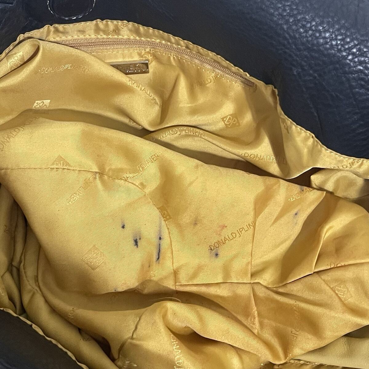 Slight discoloration marks under front exterior pocket and lower front of bag, interior discoloration marks and dust. Otherwise in great condition.