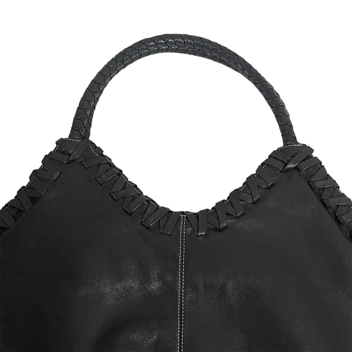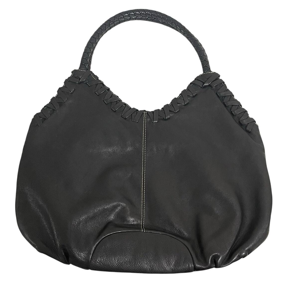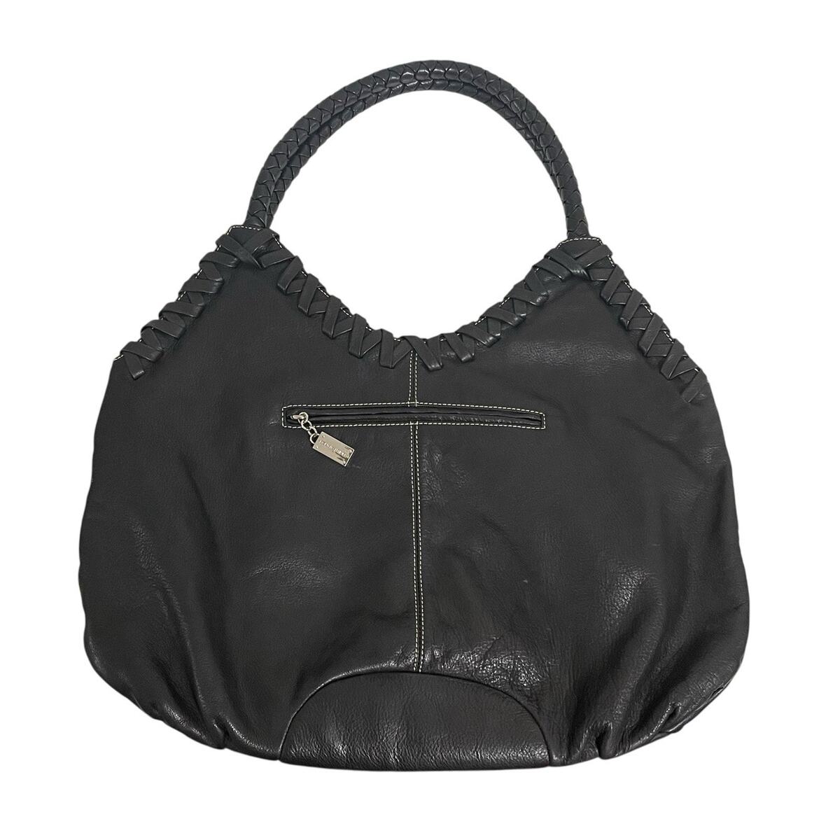 Donald J Pliner Braided Woven Trim Large Hobo Bag Black Leather Boho Flaws