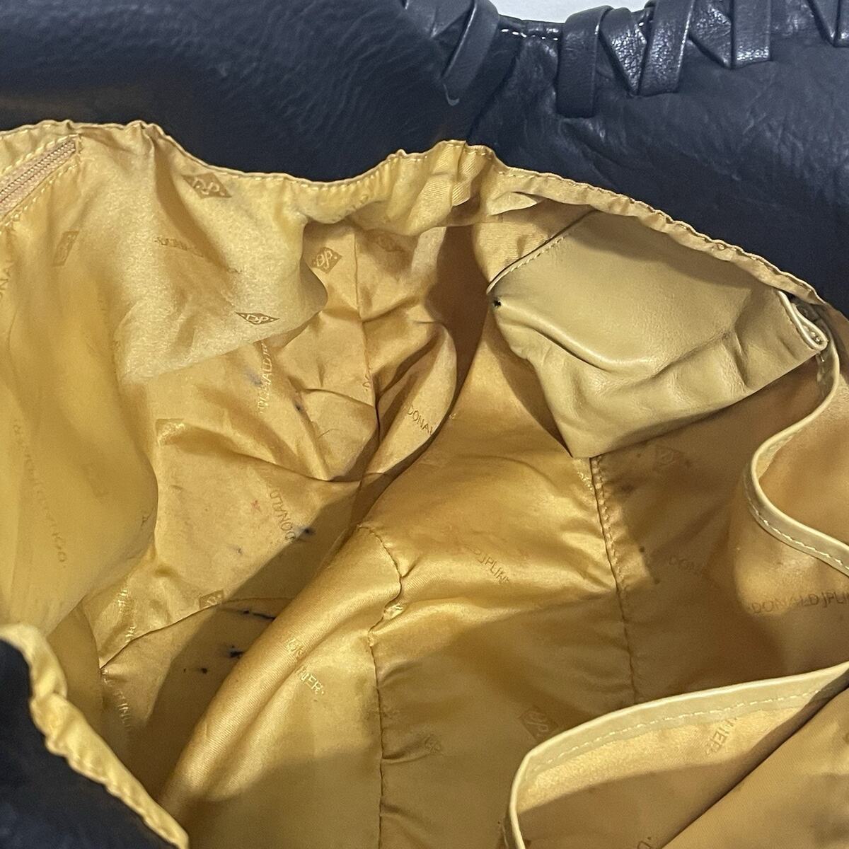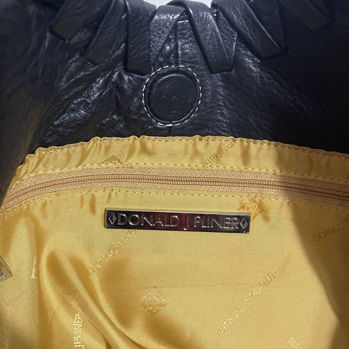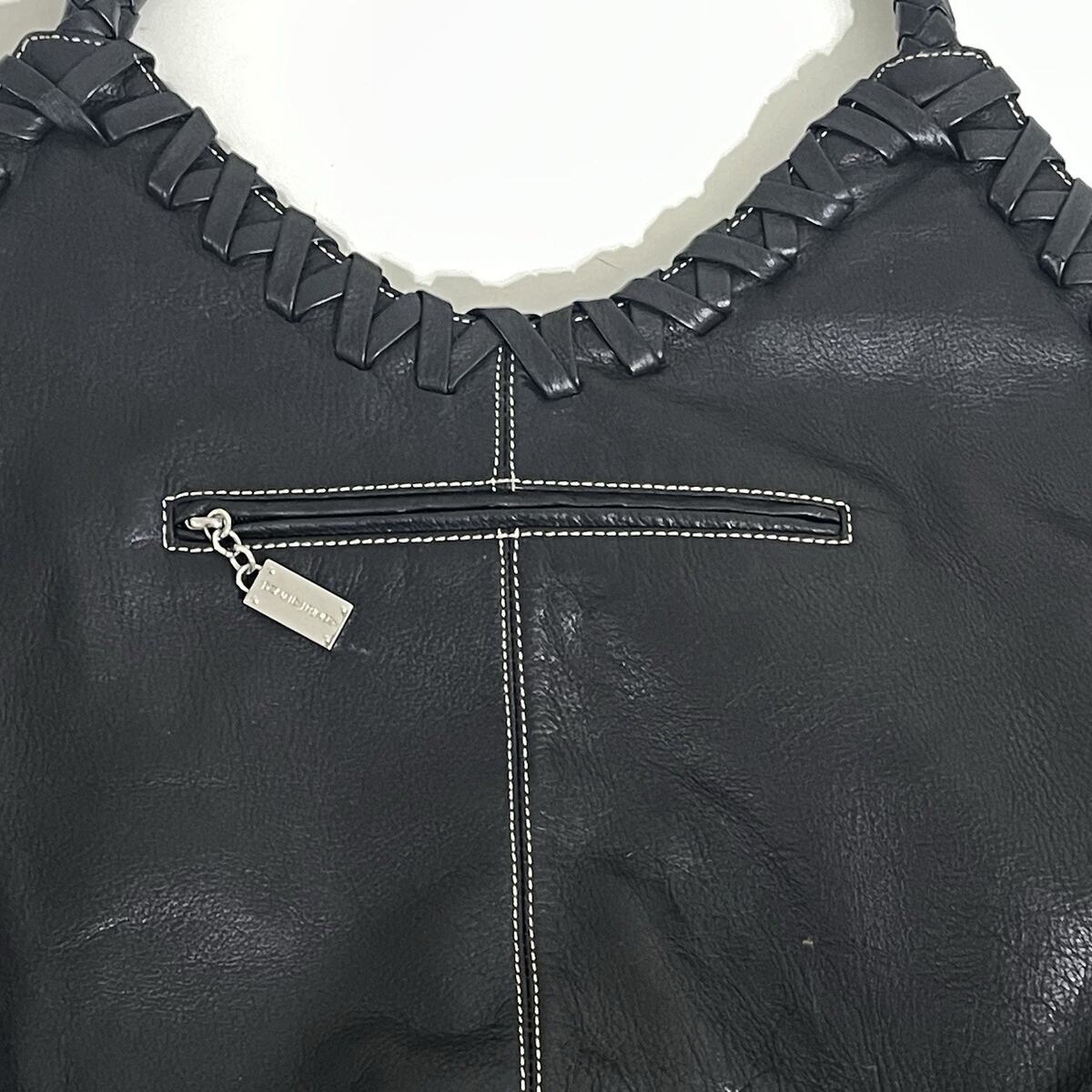 Donald J Pliner Braided Woven Trim Large Hobo Bag Black Leather Boho Flaws
