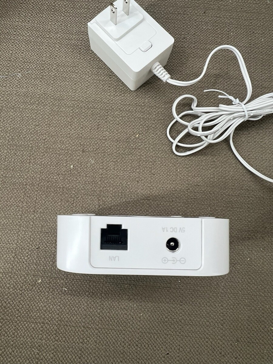 Open box; appears never used. Complete with power adapter, Ethernet cable, and manuals.