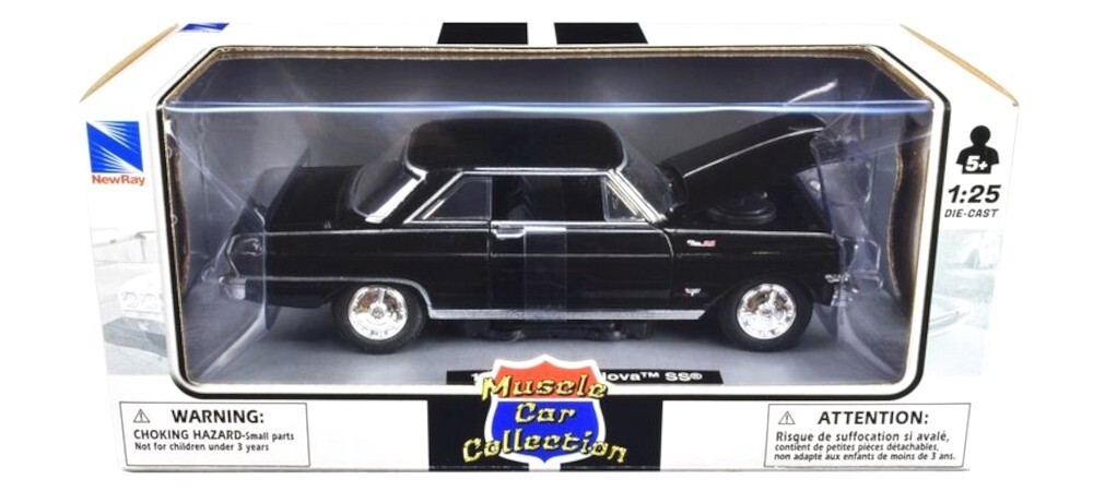 1964 Chevrolet Nova SS 1/25 Scale Diecast Car Model by Newray - BLACK w/ BOX